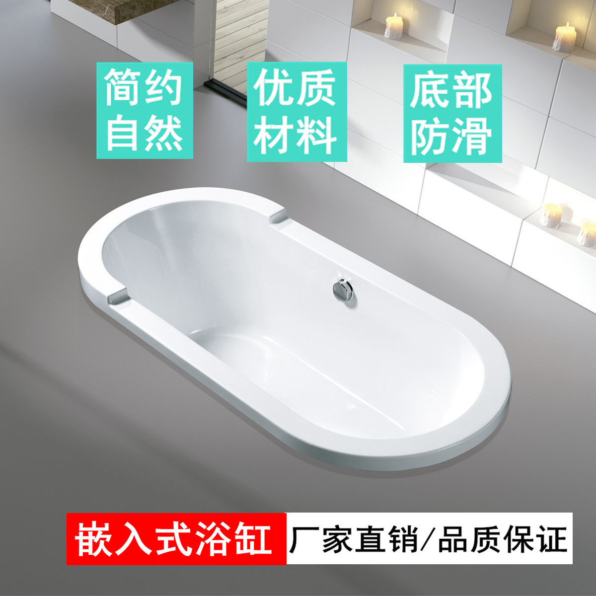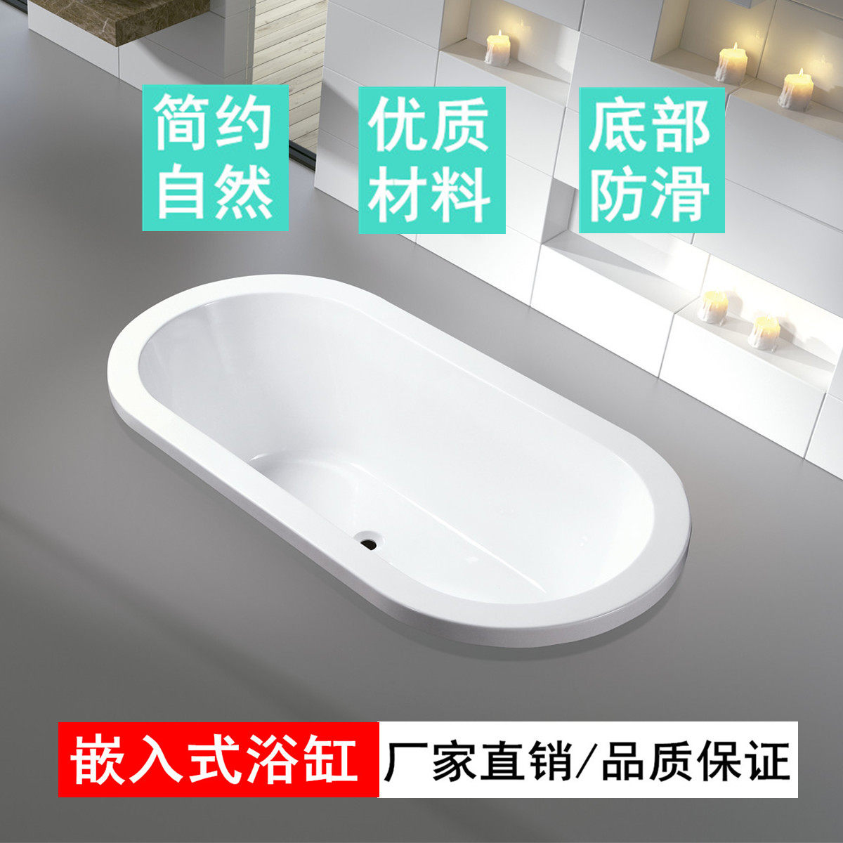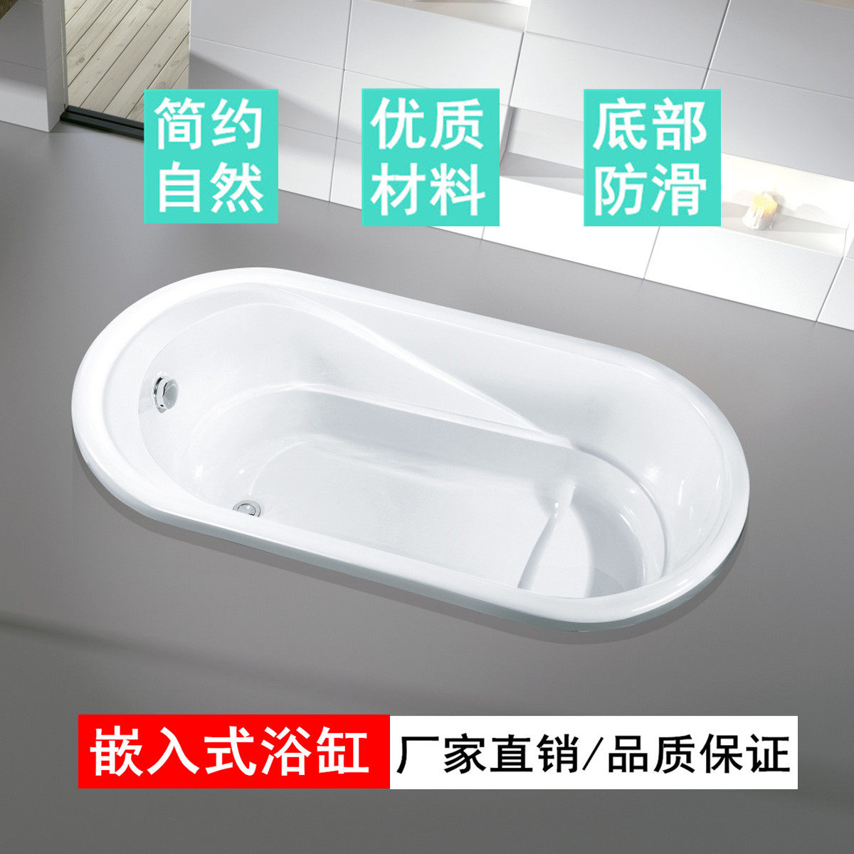 佛山厂家亚克力嵌入式 浴缸民宿酒店家用简易方形普通成人内嵌浴池