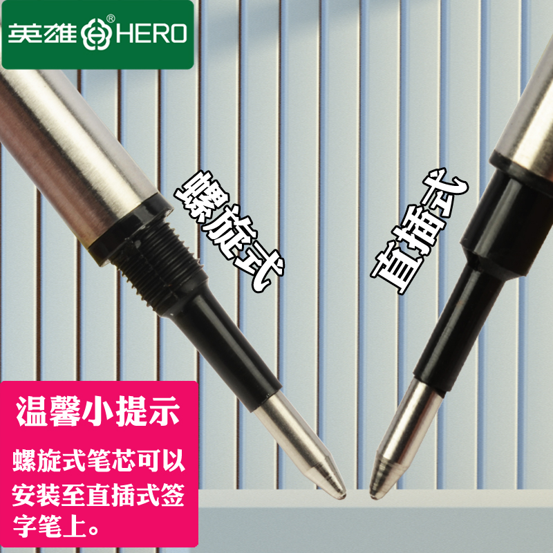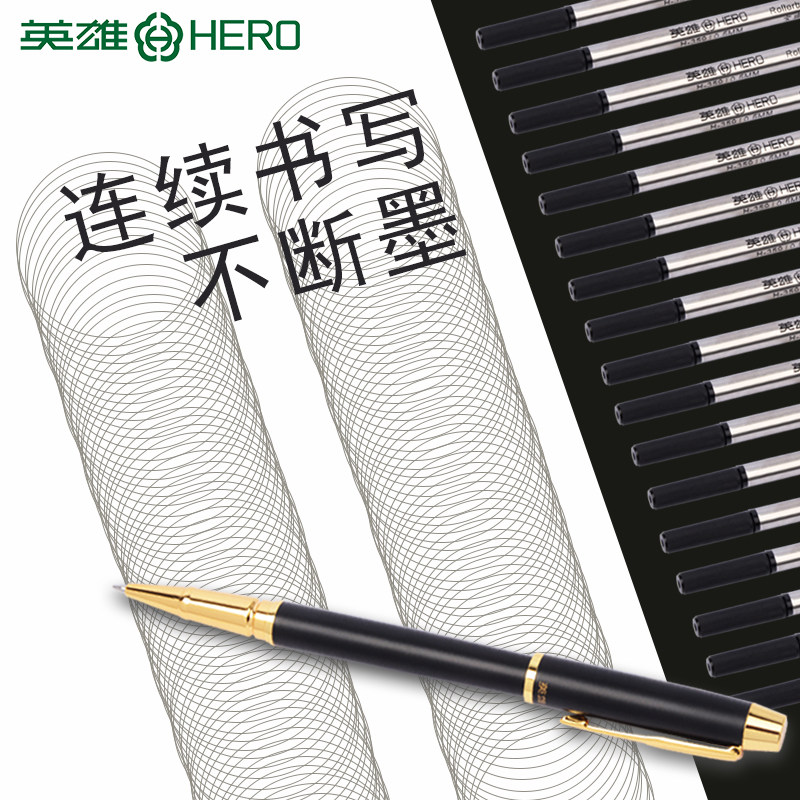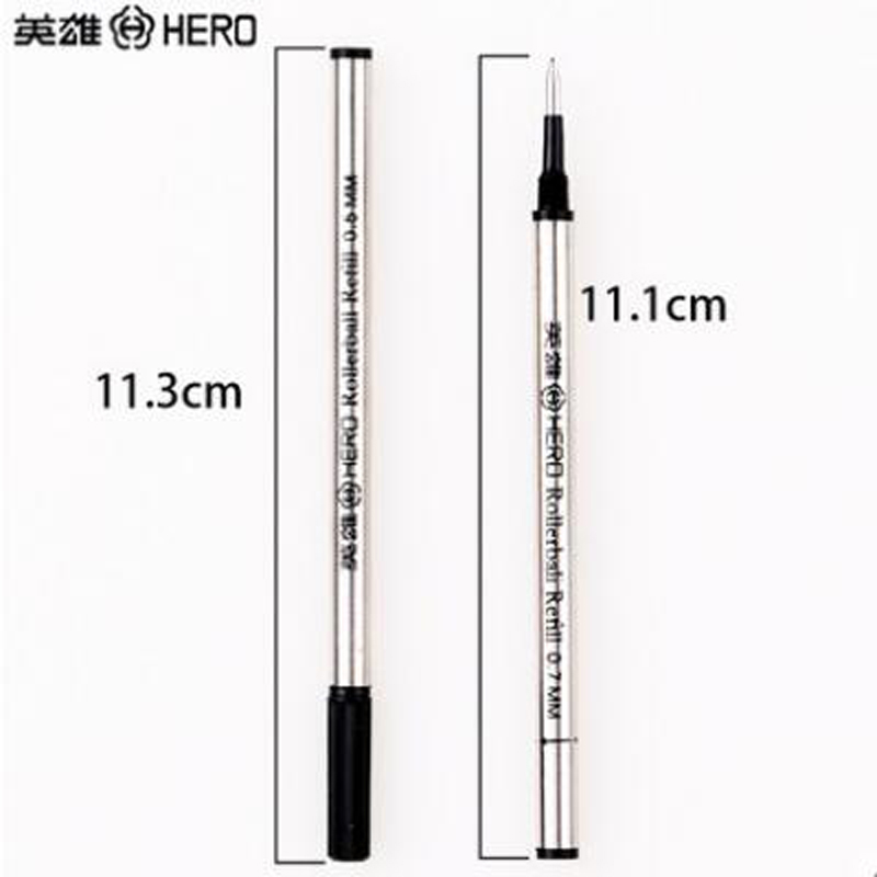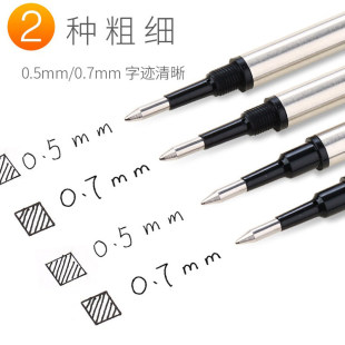 英雄笔芯碳素宝珠笔金属黑色签字笔水笔替换笔芯0.5mm 0.7mm螺纹直插通用型子弹头速干宝珠笔圆珠签字笔