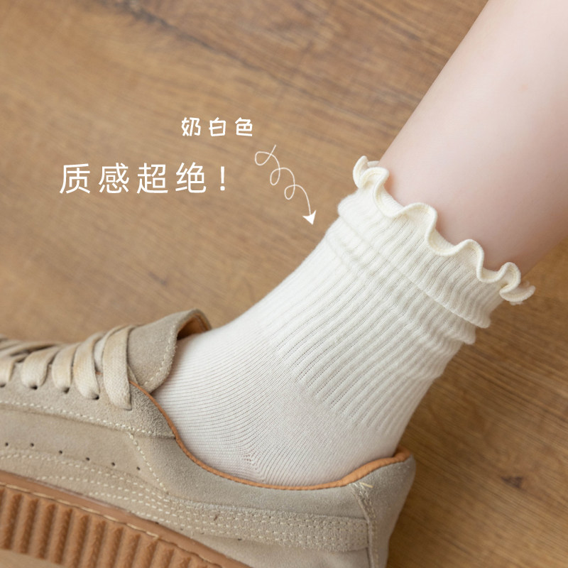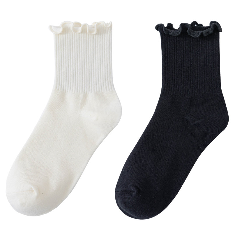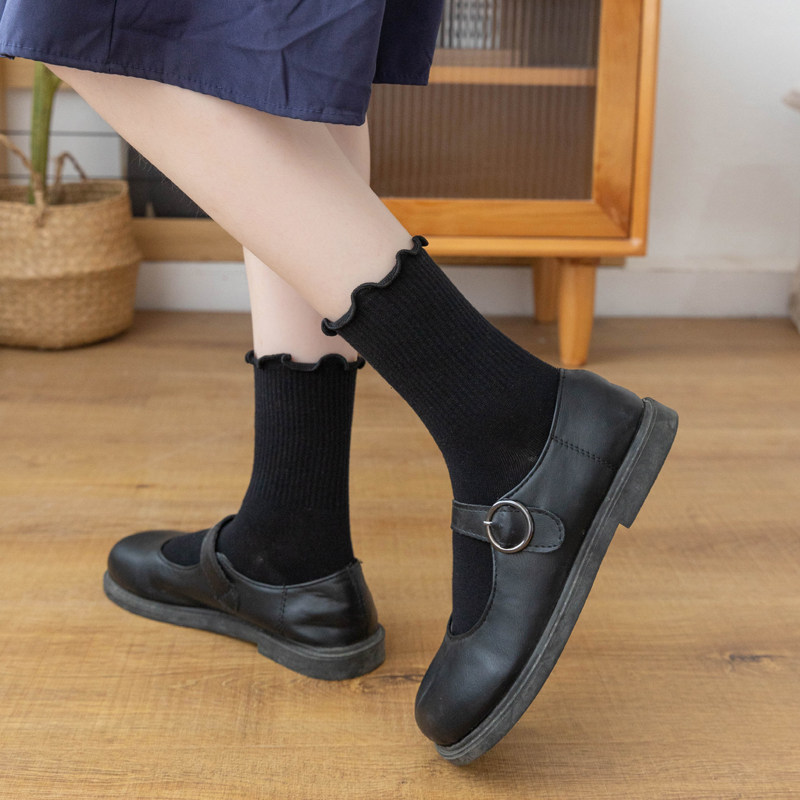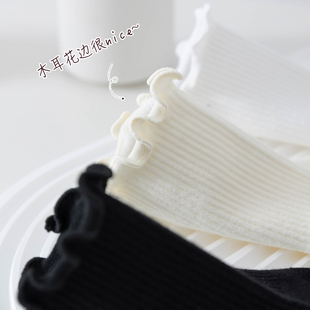 木耳边jk袜子女中筒袜春秋玛丽珍小皮鞋 黑白色花边堆堆袜 搭配夏季