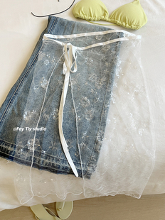 feytiy 裙帘叠穿百搭刺绣蕾丝半身纱裙韩国ins屁帘子春夏系带围裙