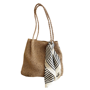 ins韩版 复古草编包拉链单肩沙滩包简约森系编织托特包大容量女包