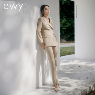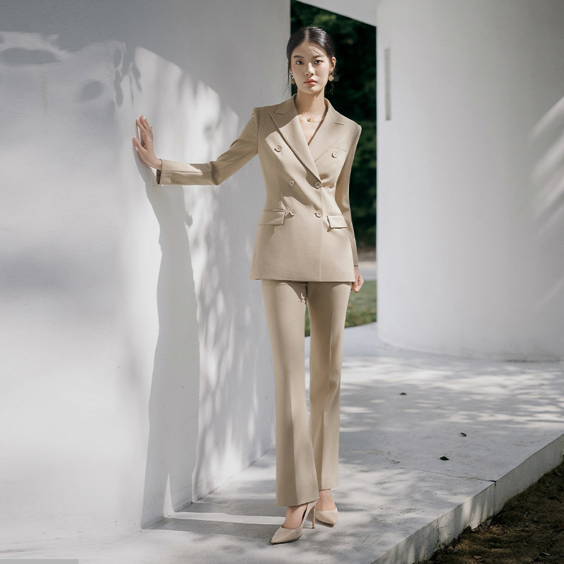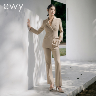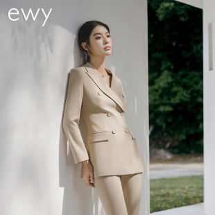 外套女气质修身 干练卡其色双排扣职业西装 西服OL 新款 ewy2025春季