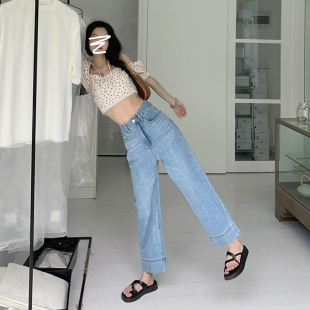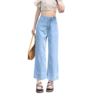 女春夏宽松显高145xs九分直筒裤 小个子裤 子150八分浅色牛仔阔腿裤