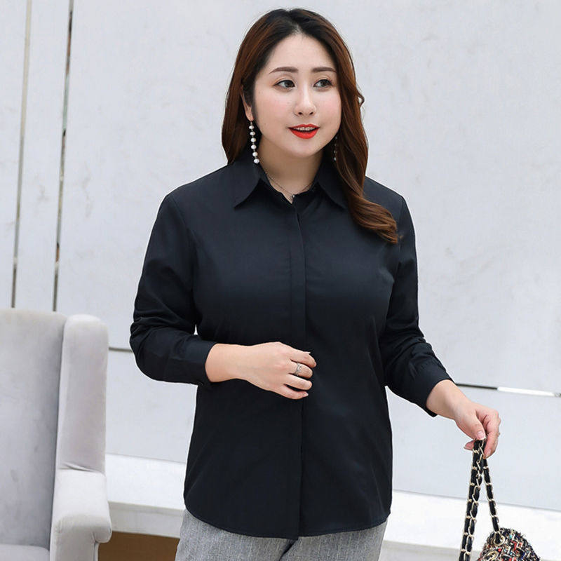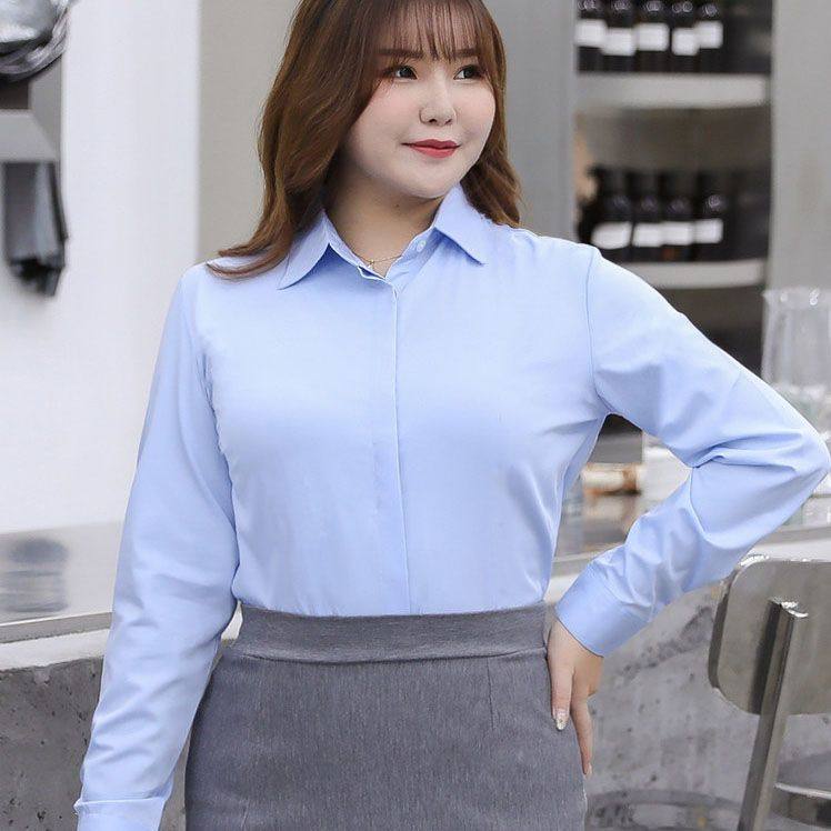 新款 女200斤加肥职业装 特大码 胖mm长袖 宽松衬衣 白衬衫 2025春装