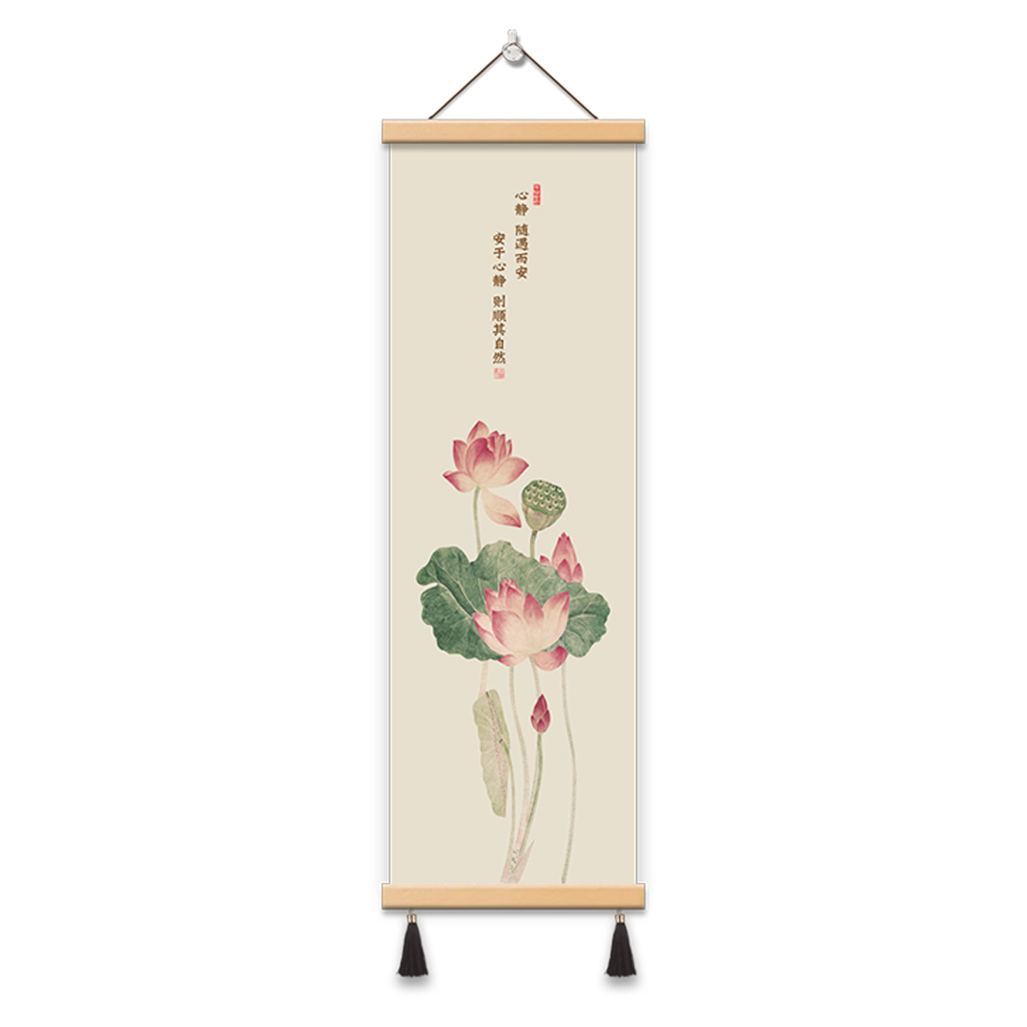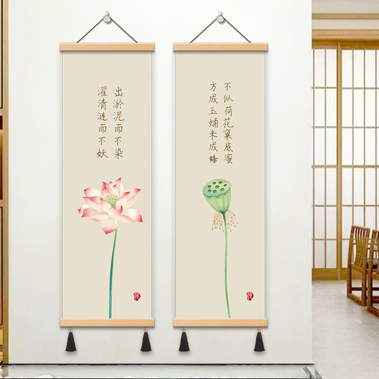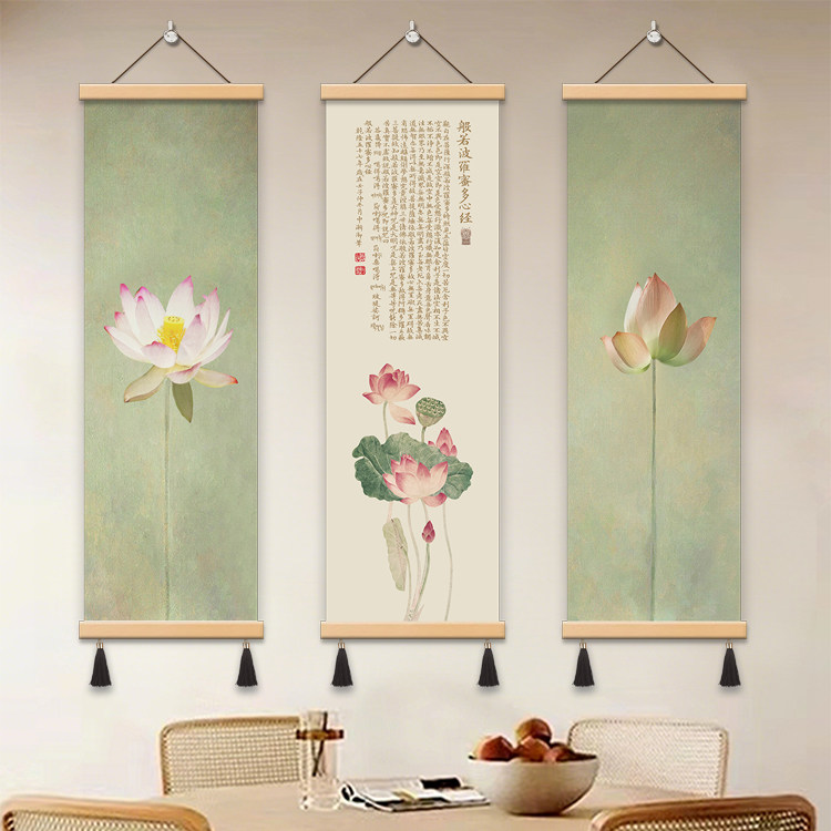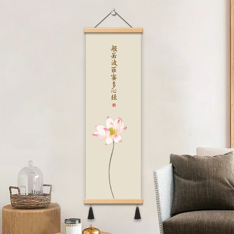 中式 饰画书房挂画布艺壁画免打孔挂布 般若波罗蜜心经荷花办公室装