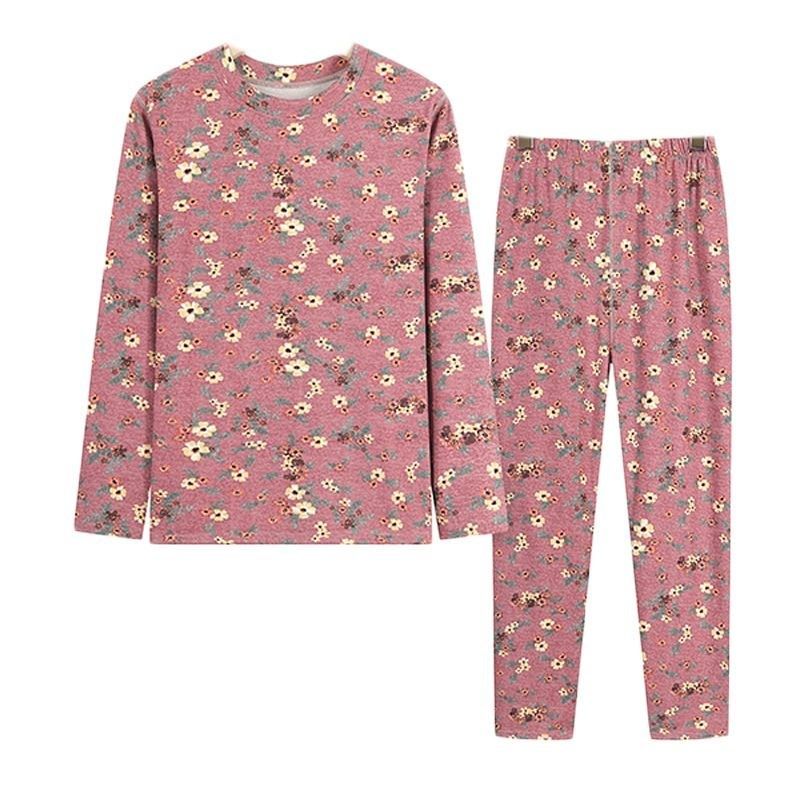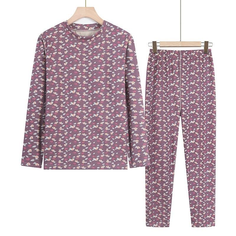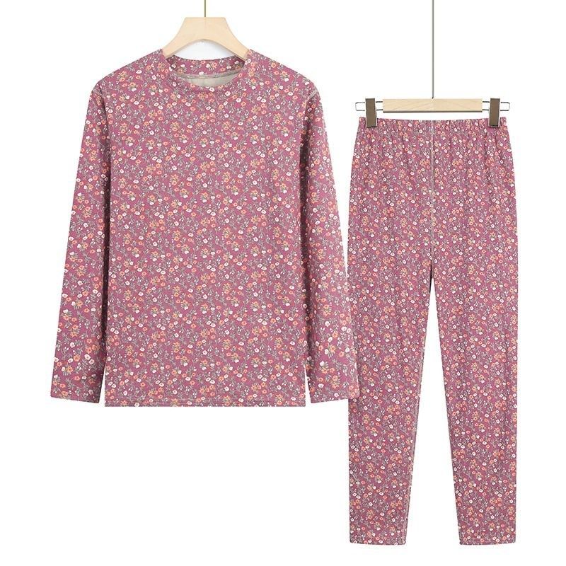 老人太太衣服 德绒保暖内衣两件套装 中老年妈妈秋冬秋衣秋裤 奶奶装