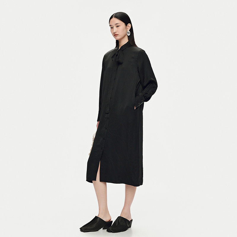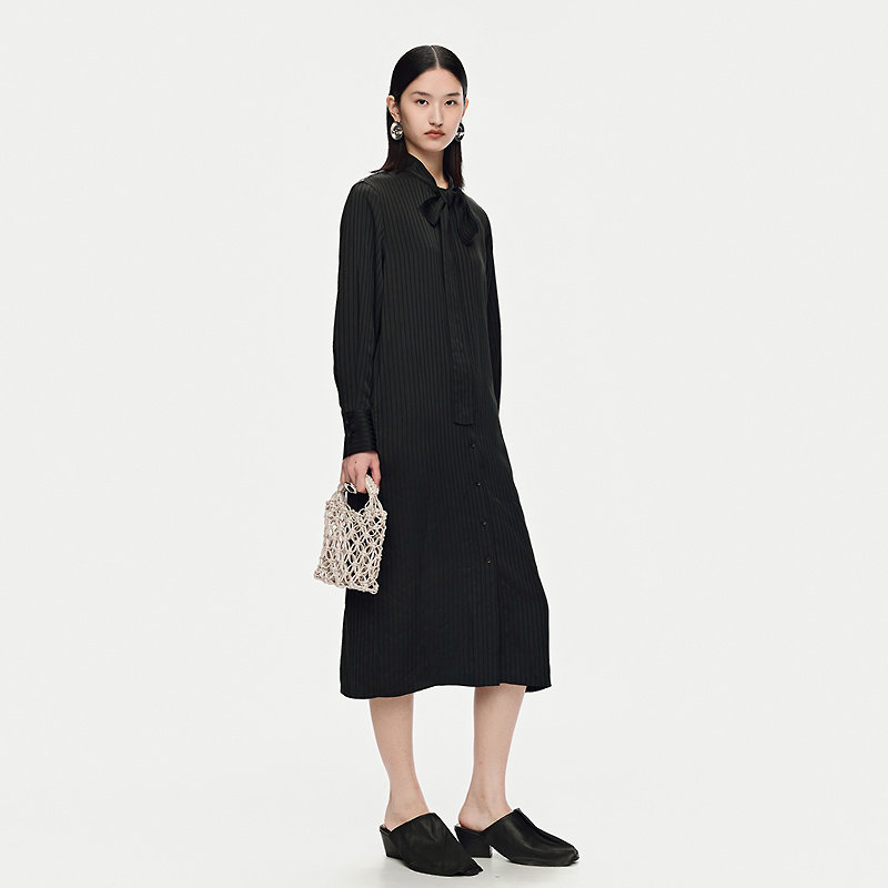 条纹衬衫 新款 AUM噢姆2025年秋季 连衣裙黑色休闲长裙 天猫臻选
