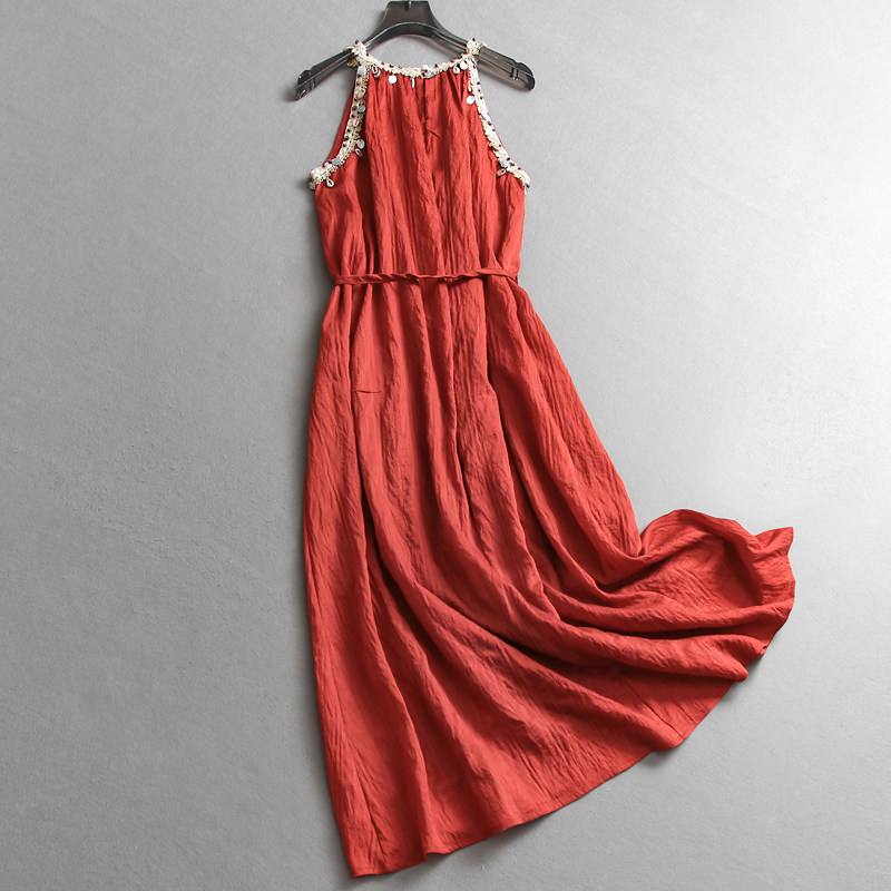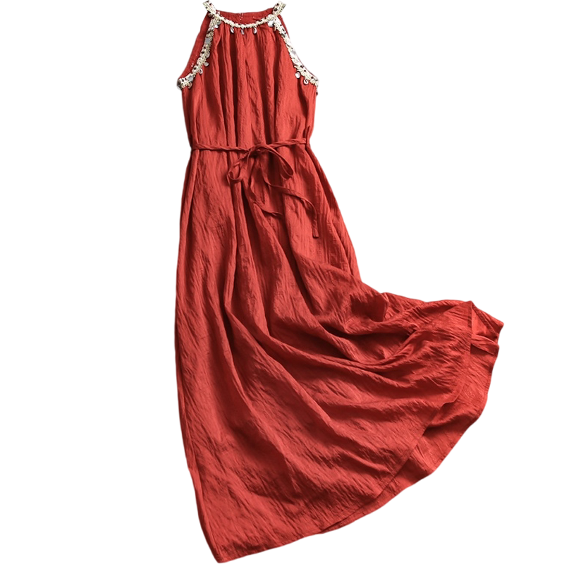 女长裙连衣裙C027 新款 波西米亚民族风贝壳挂脖无袖 吊带裙2025夏季