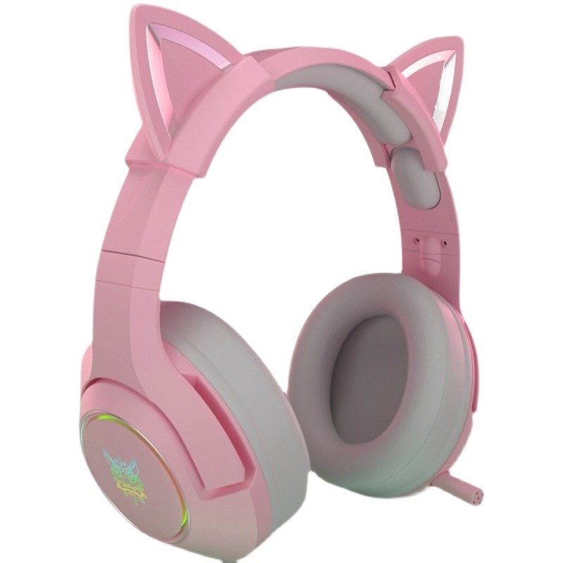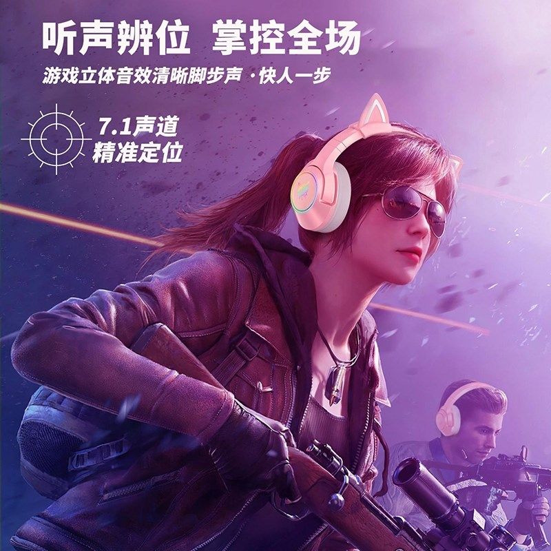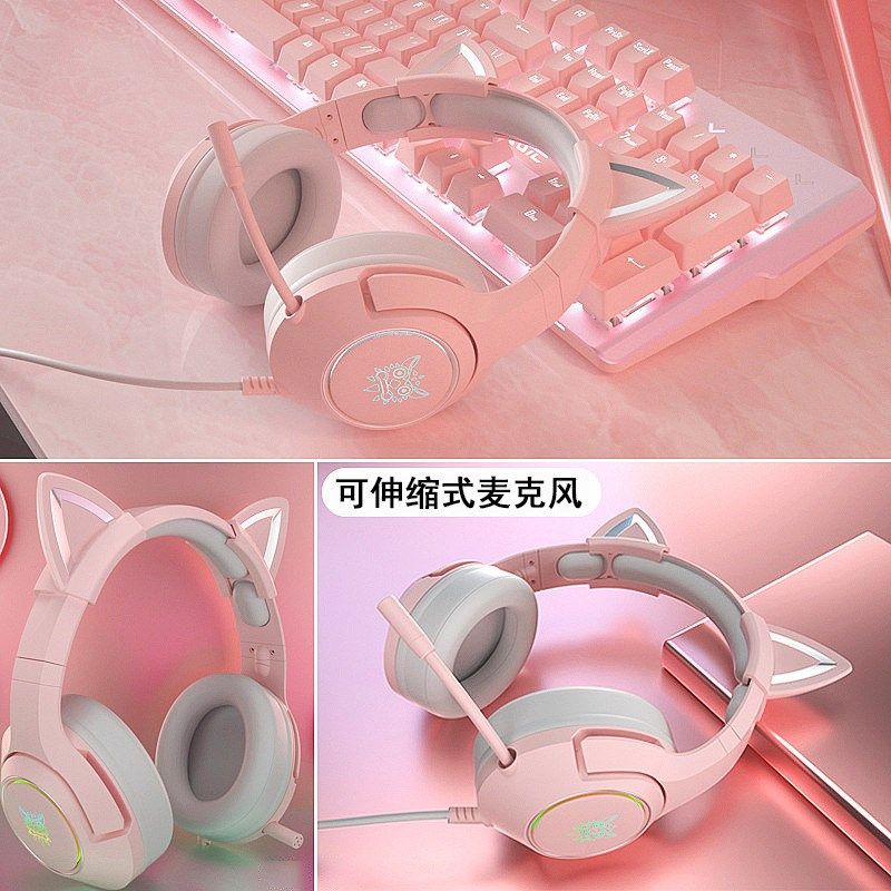游戏耳机有线带麦克风二合一电脑笔记本专用女生款 新款 猫耳头戴式