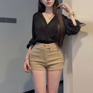 高腰弹力美胯热裤 李李服饰纯欲丰胯细腰牛仔短裤 女2026夏季