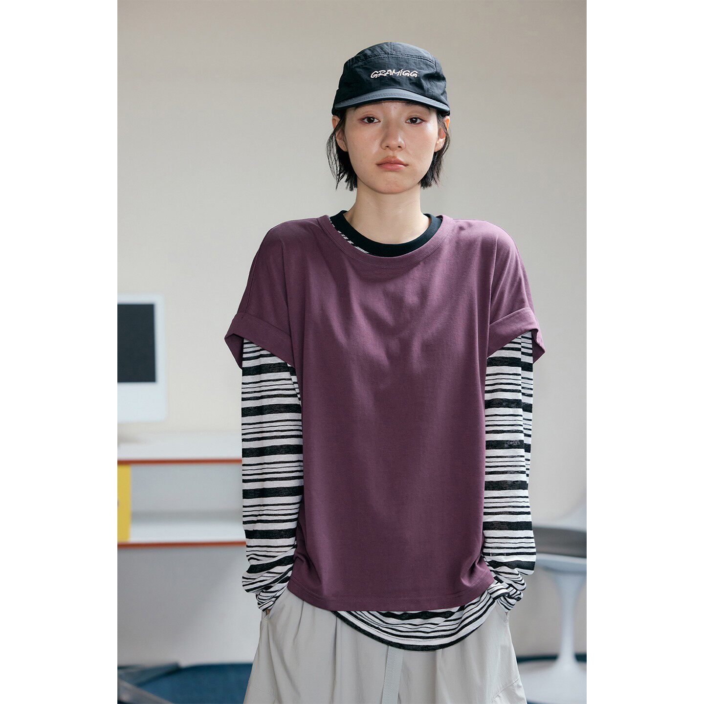 落肩T恤6804 170g棉混纺竹节纹理三色圆领大版 鹿与飞鸟 维他命T