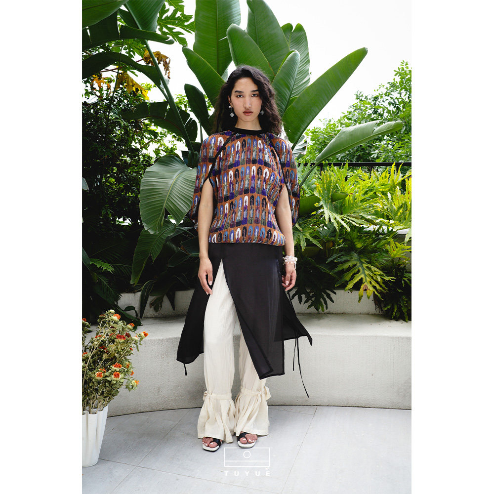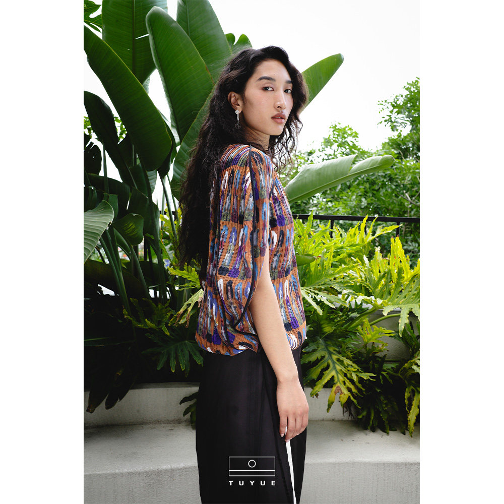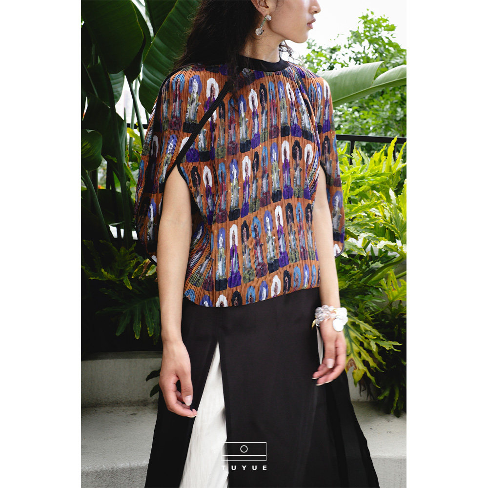敦煌壁画 原创设计 印花圆廓形褶皱上衣 东方美学 TUYUE涂月