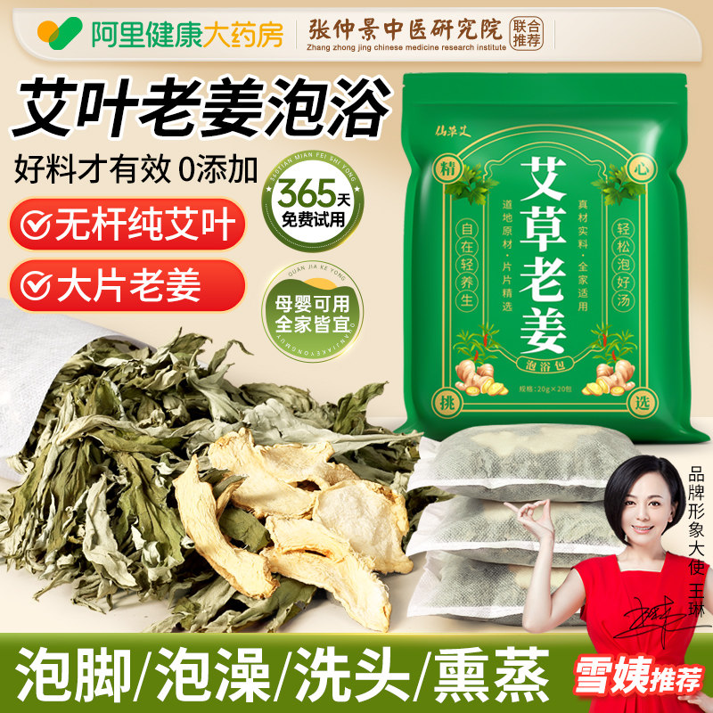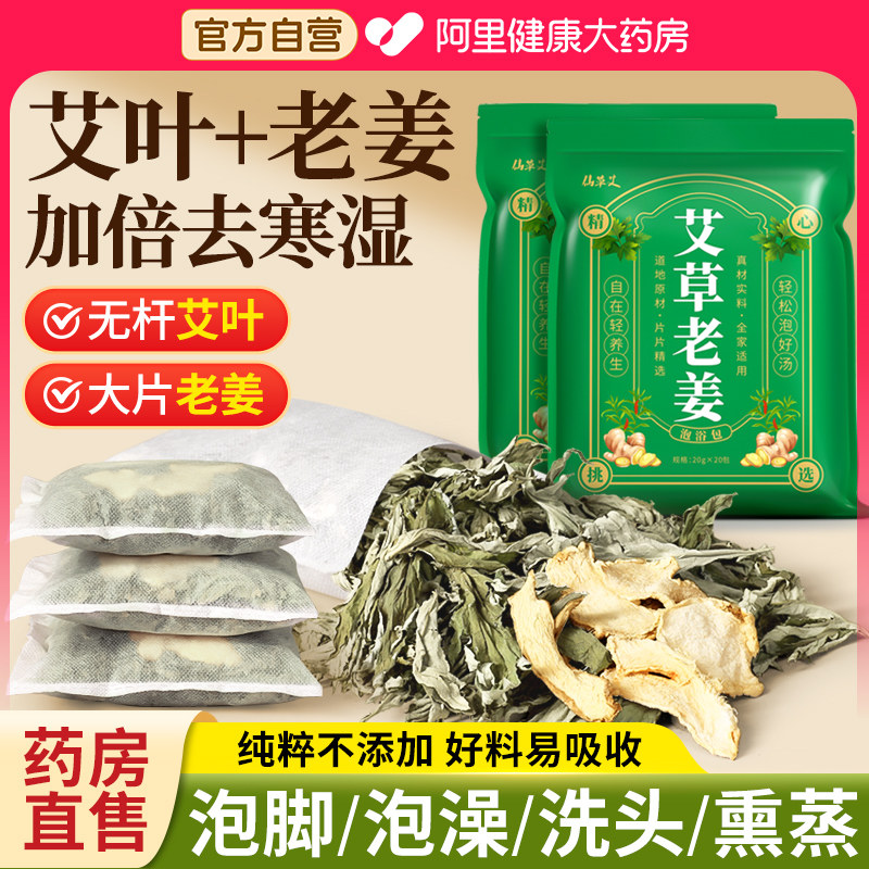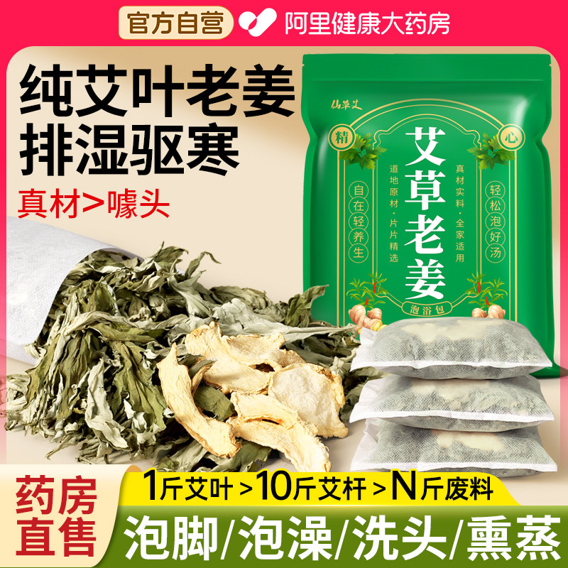 艾叶老姜干艾草叶泡脚药包产妇产后坐月子泡澡洗头去湿气足浴洗澡