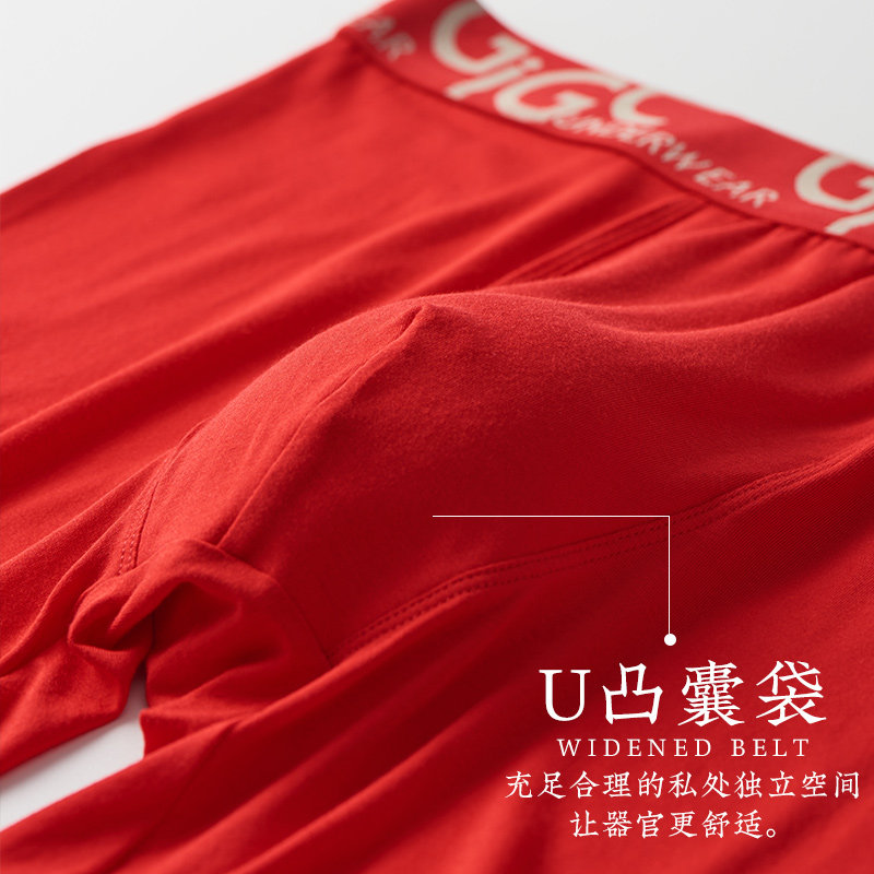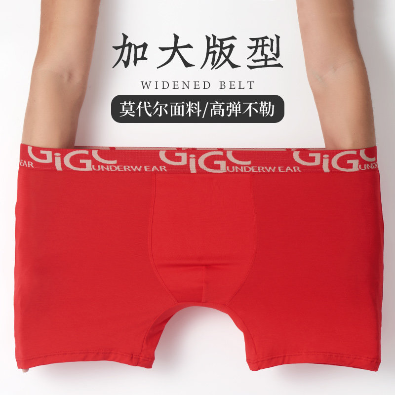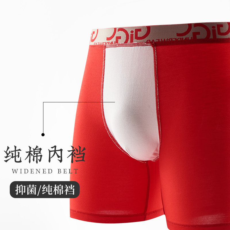 防磨腿平角裤 本命年男士 纯棉结婚大码 运动型莫代尔四角裤 红色内裤