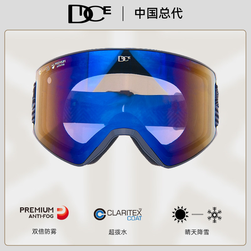 日本DICE超强防雾滑雪镜高清广角视野柱面单板雪镜护目镜SD0202