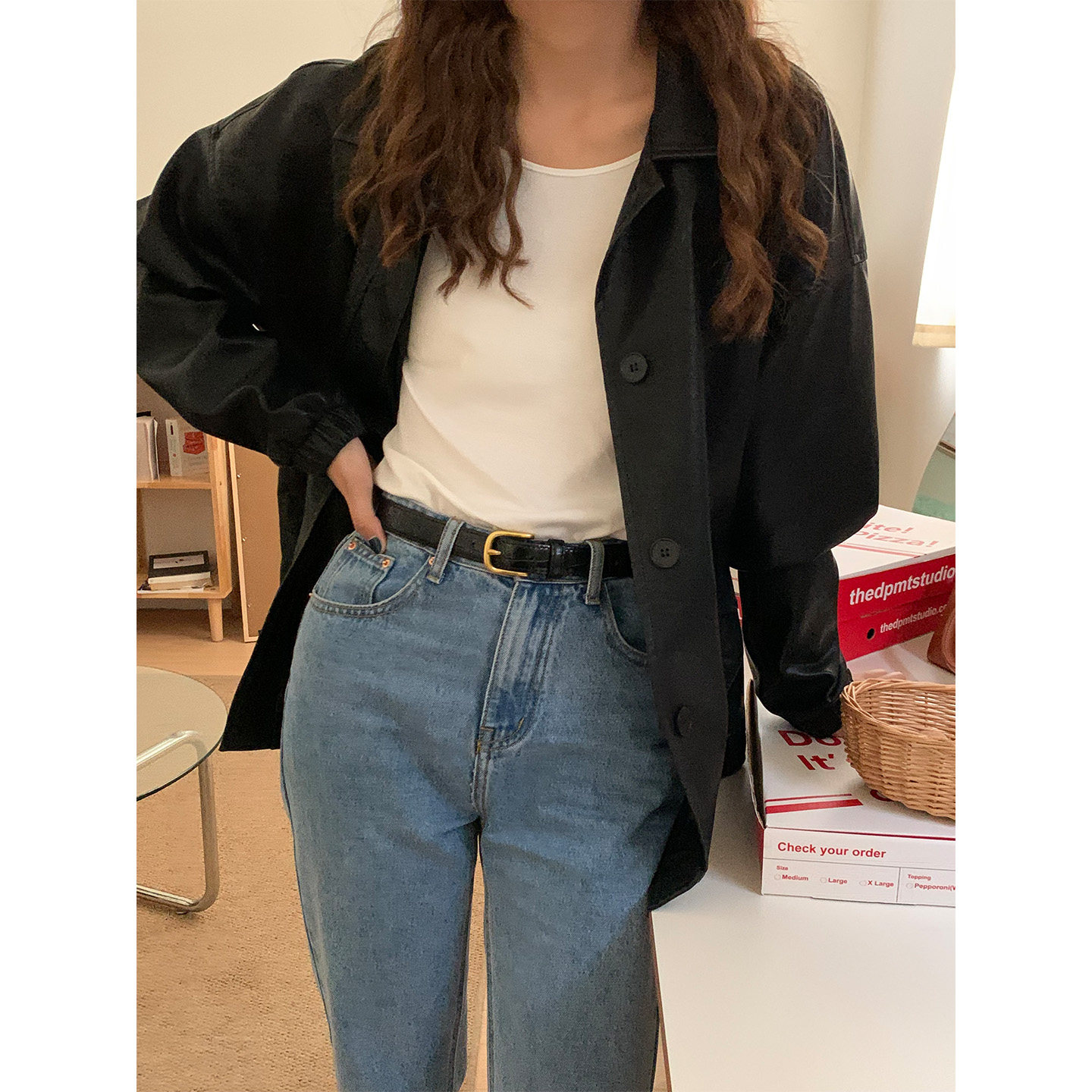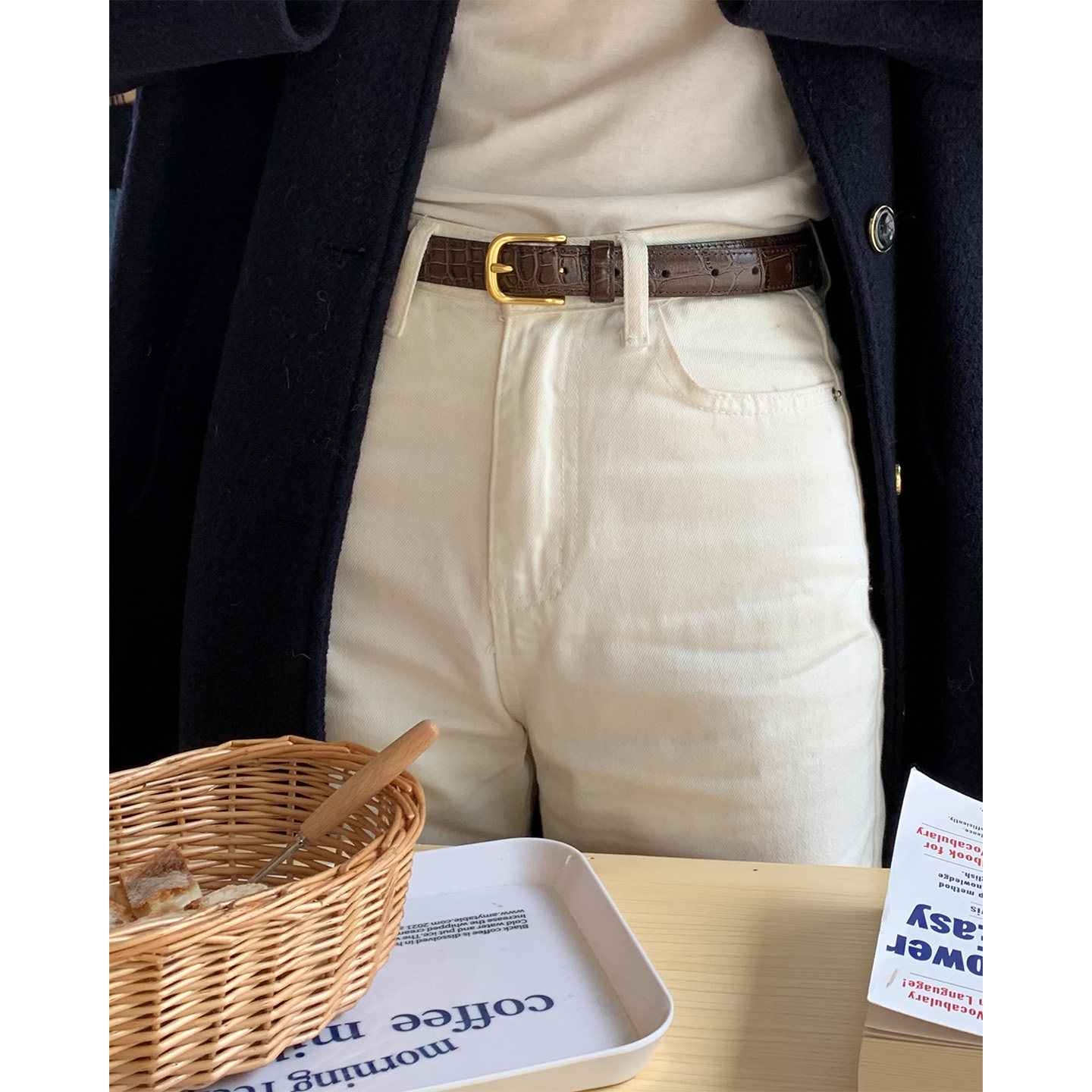 芝士商店 设计感小众复古棕色免打孔腰带配饰 头层牛皮细皮带女款