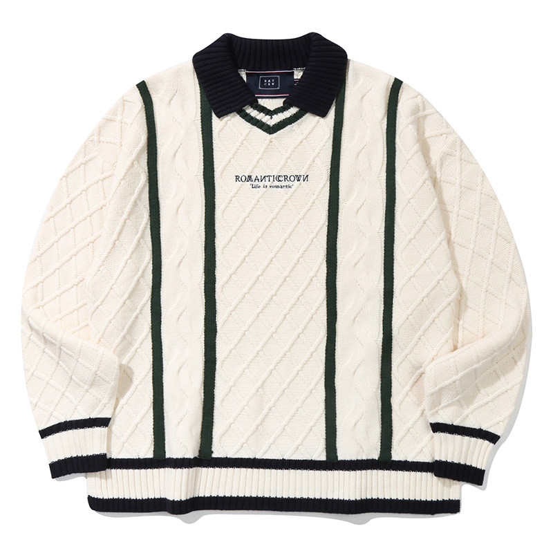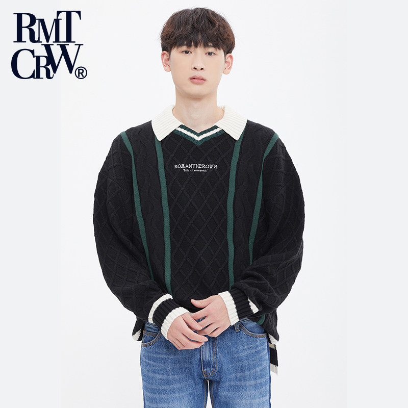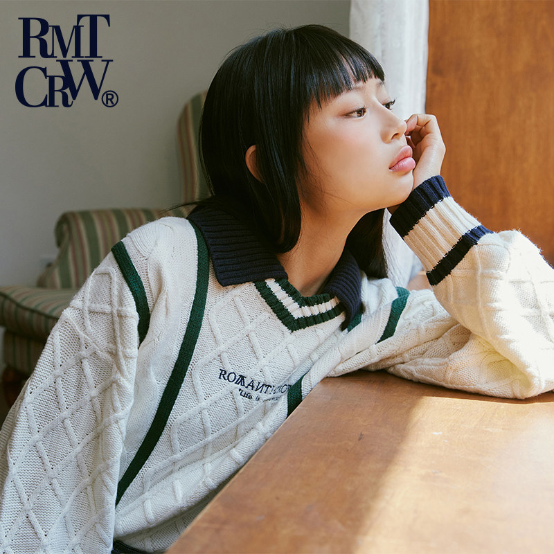 V领毛衣上衣 翻领华夫格针织开衫 RomanticCrown 个性