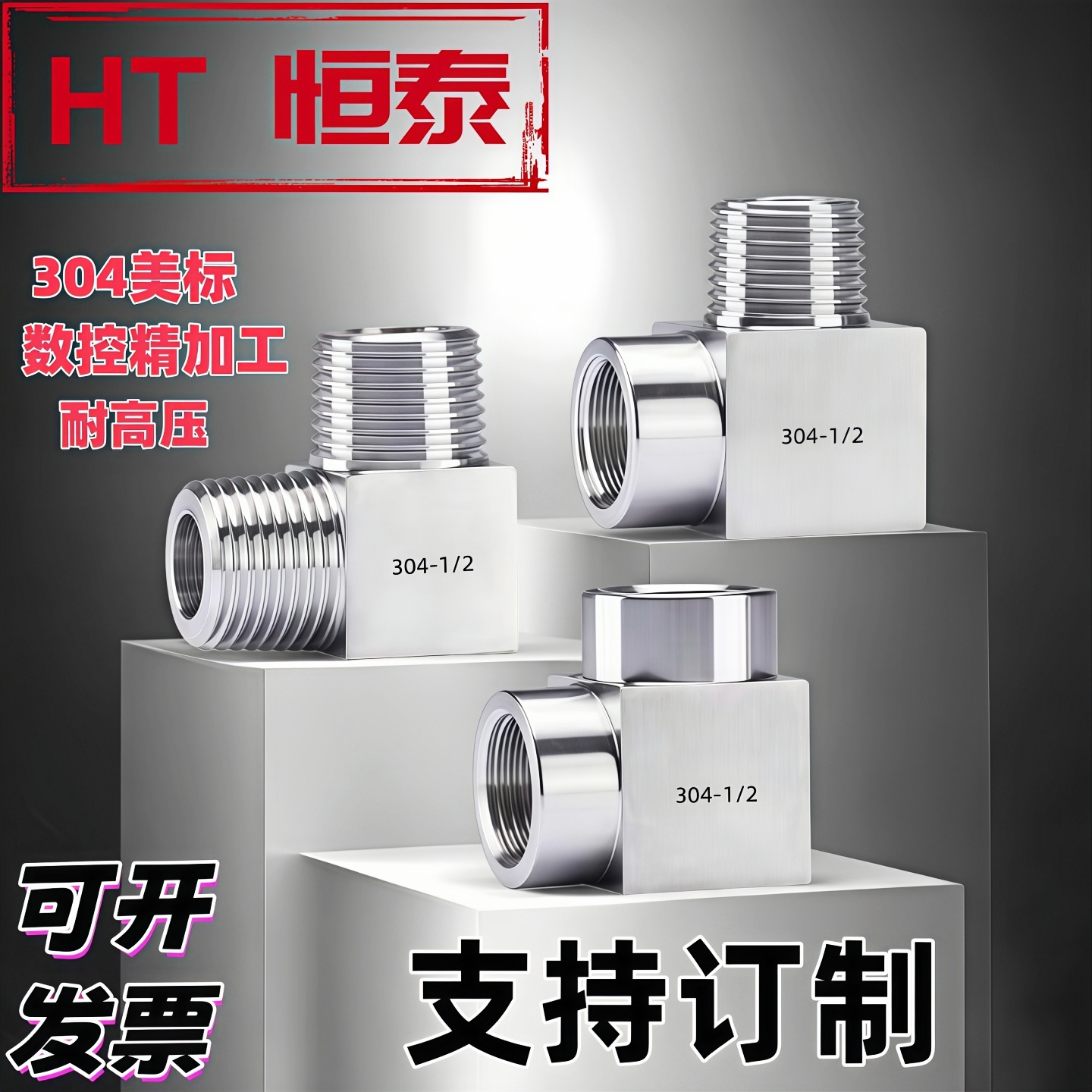 304不锈钢4分加厚内外丝带活接三通燃气管热水器弯头水管接头配件