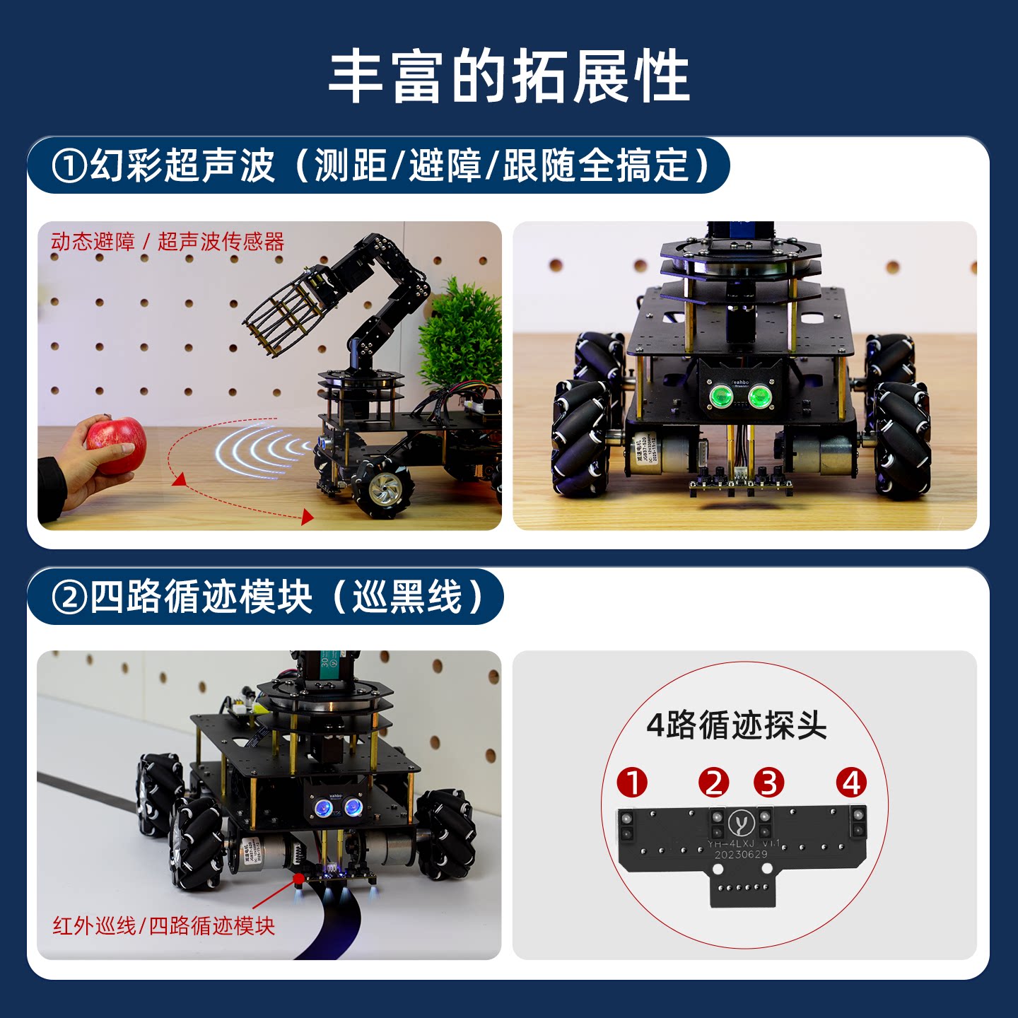 寻迹 循迹 超声波 臂章 定制 stm32智能小车套件 51单片机 遥控