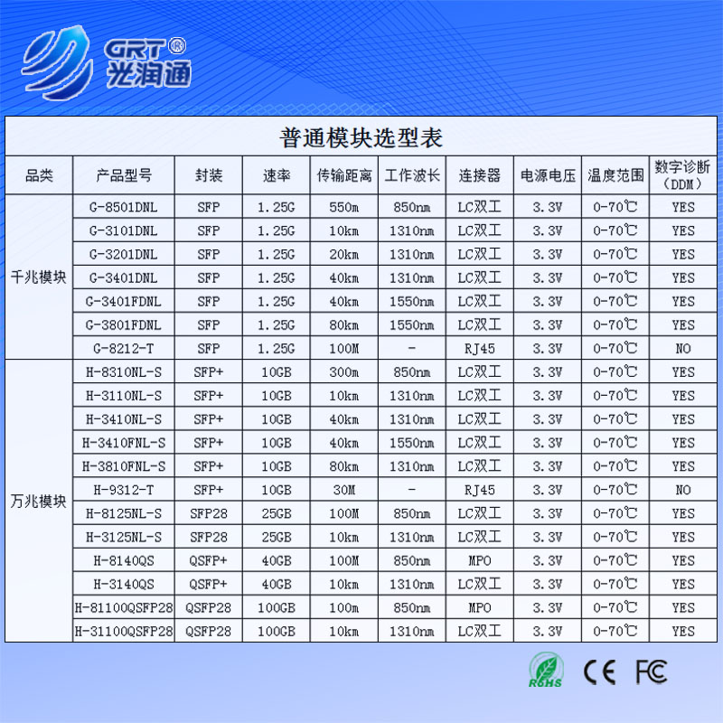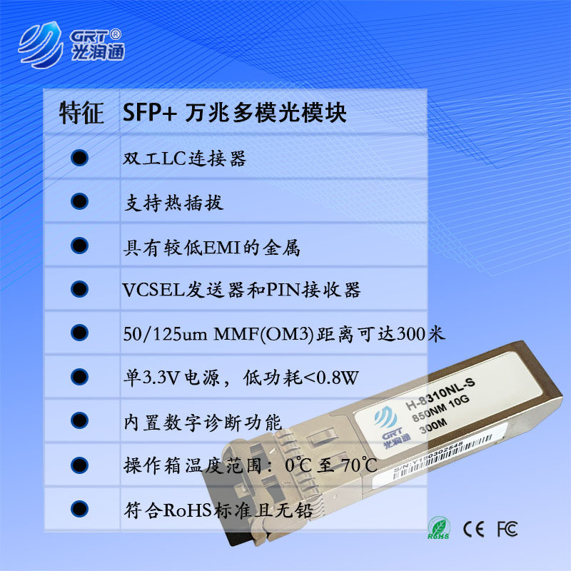 850nm D款 万兆多模H 交换机光模块 8310NL 双纤LC接口 光润通SFP 300m