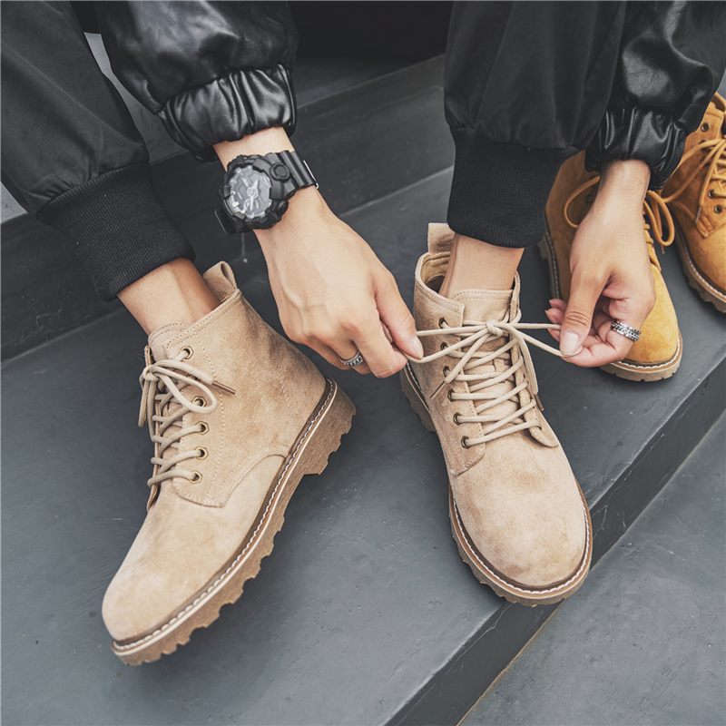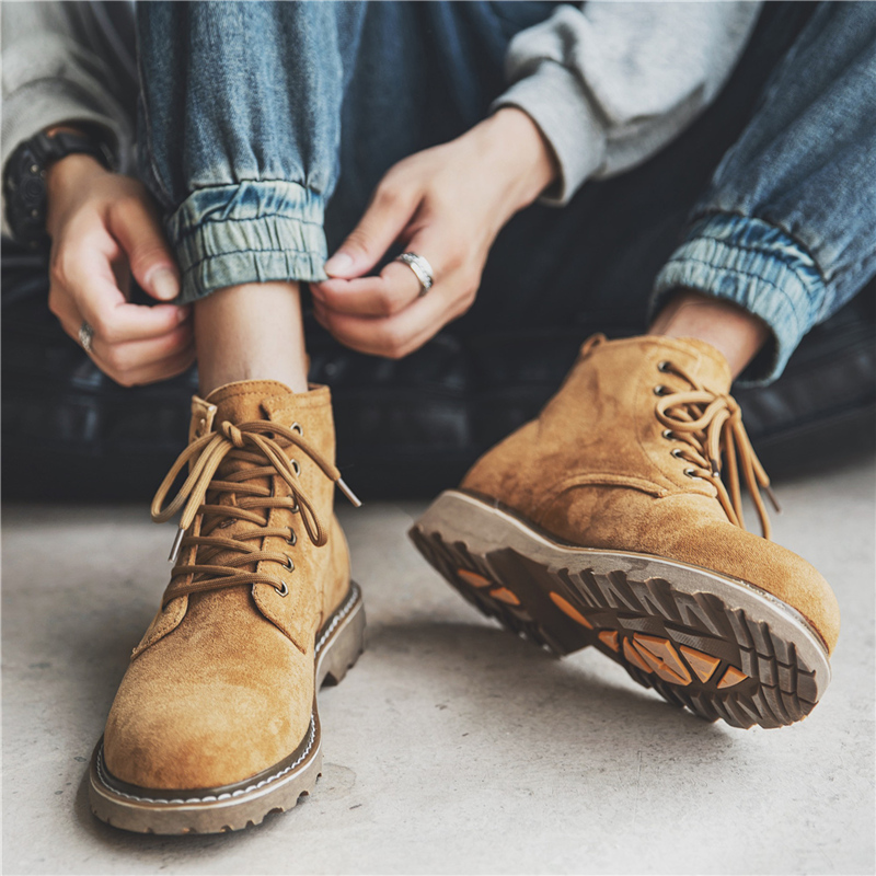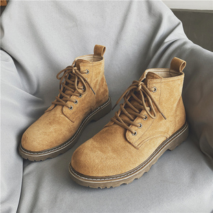 麂皮靴男生高帮大黄靴子潮鞋 环球马丁靴男款 男士 鞋 子 春夏百搭工装
