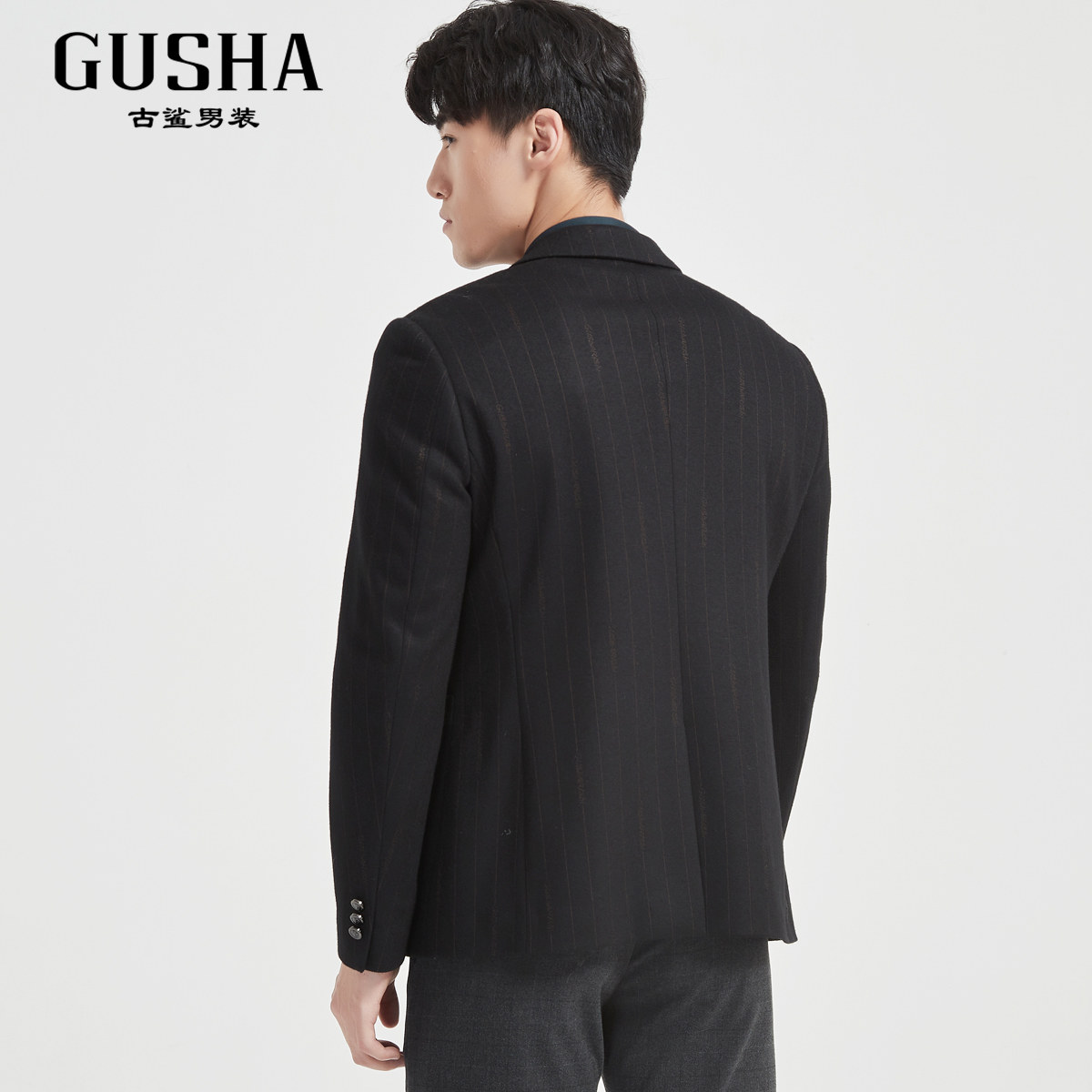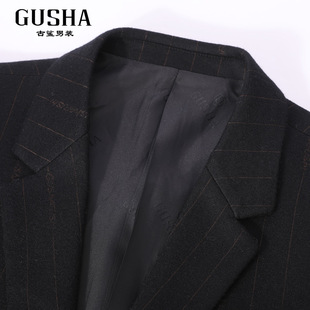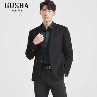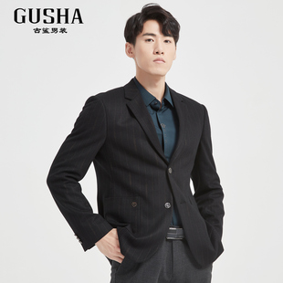 男商务通勤直筒休闲西服秋冬清仓 古鲨黑色竖条纹高级西装 羊毛