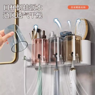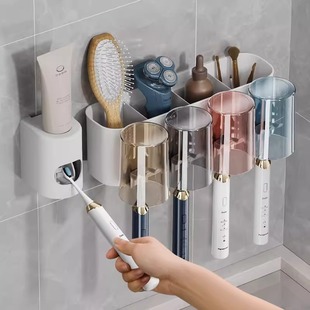 牙刷牙杯壁挂置物架电动牙刷套装 免打孔卫生间牙具座牙膏收纳浴室