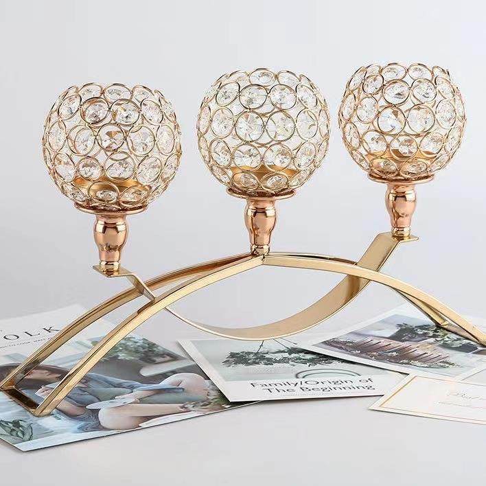 复古欧式 蜡烛台座 铁艺烛台摆件家用餐桌浪漫烛光晚餐道具三头法式
