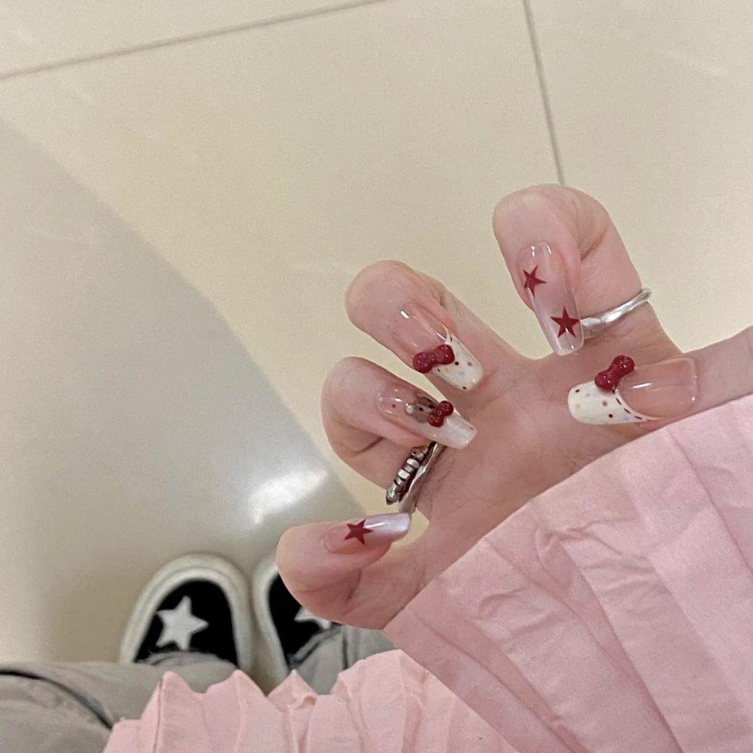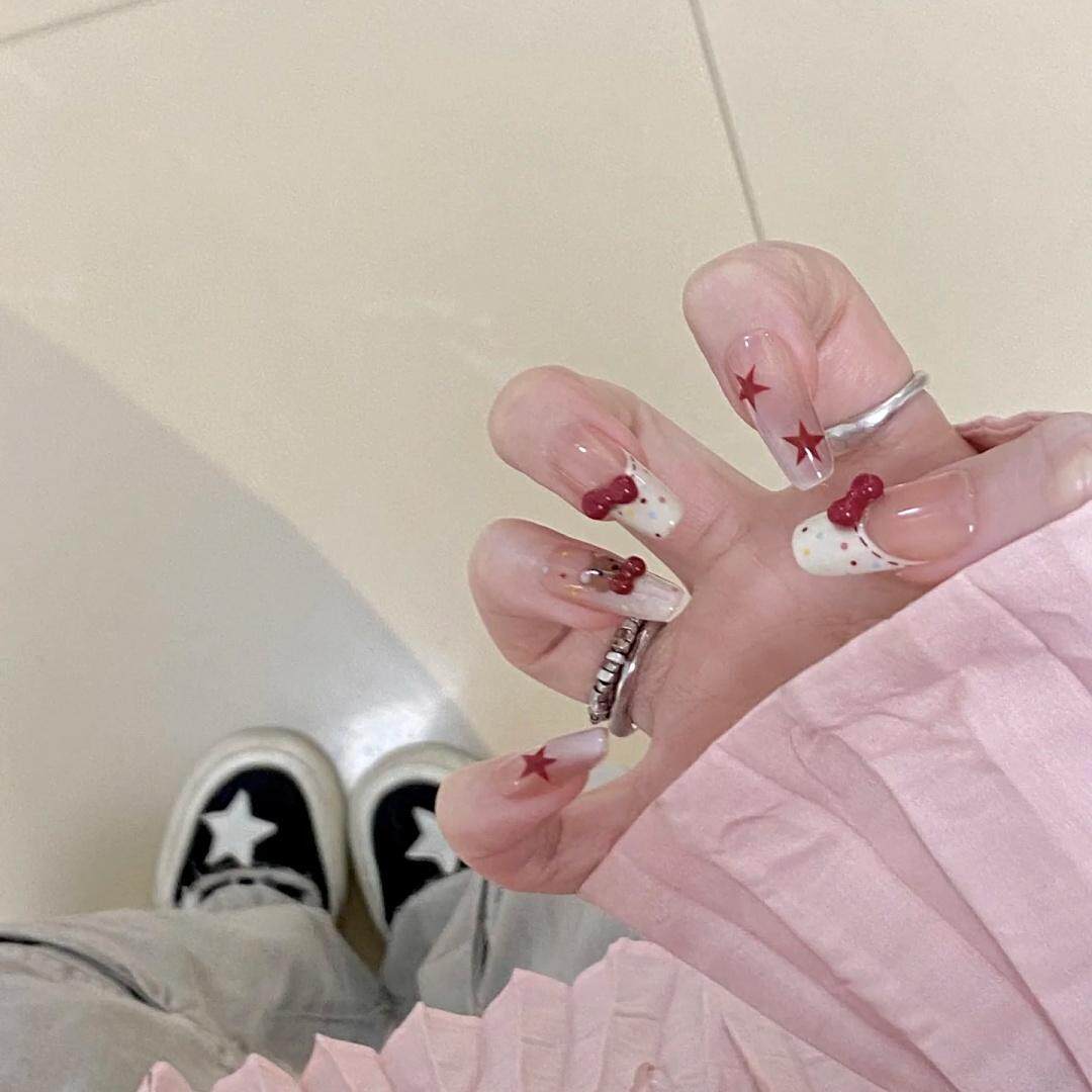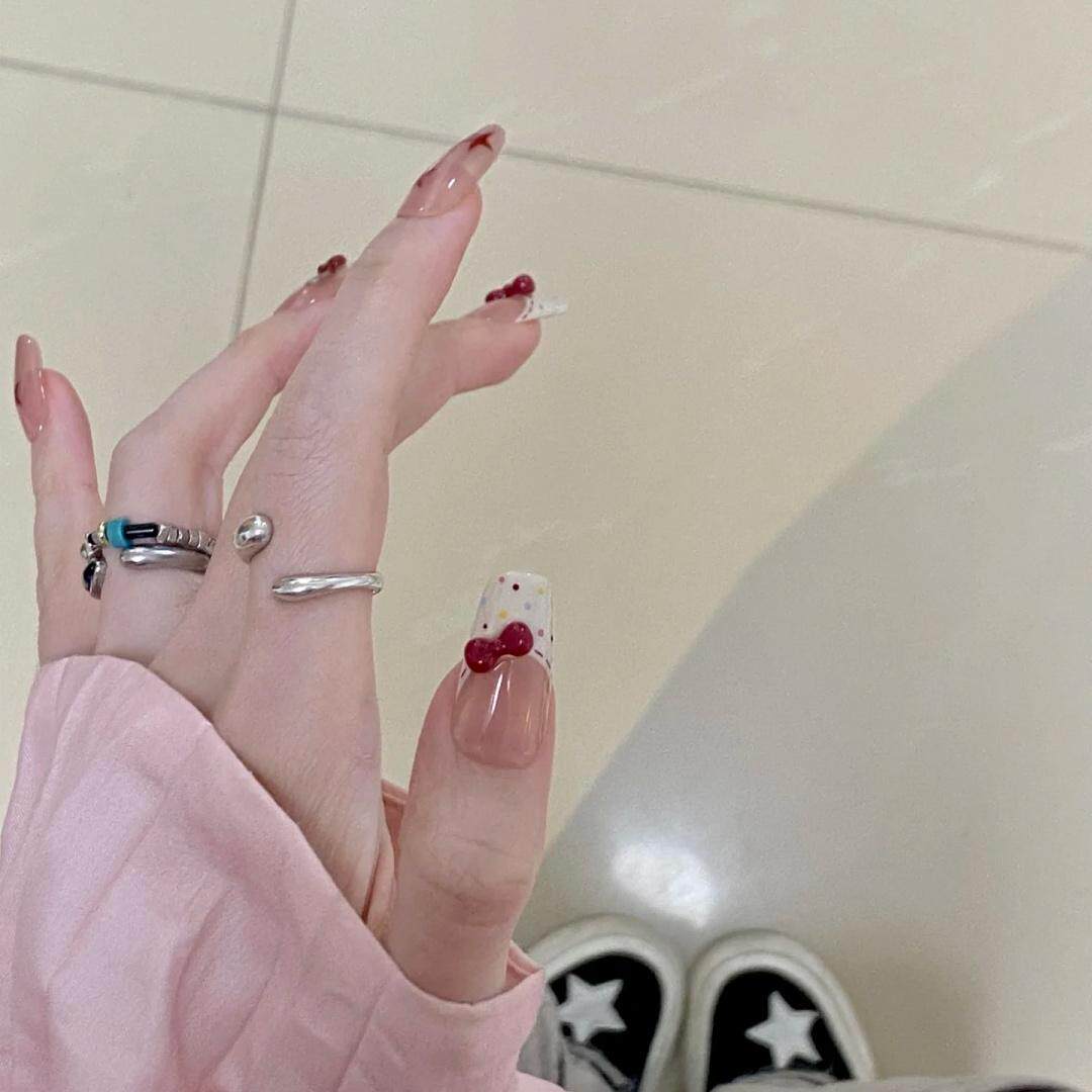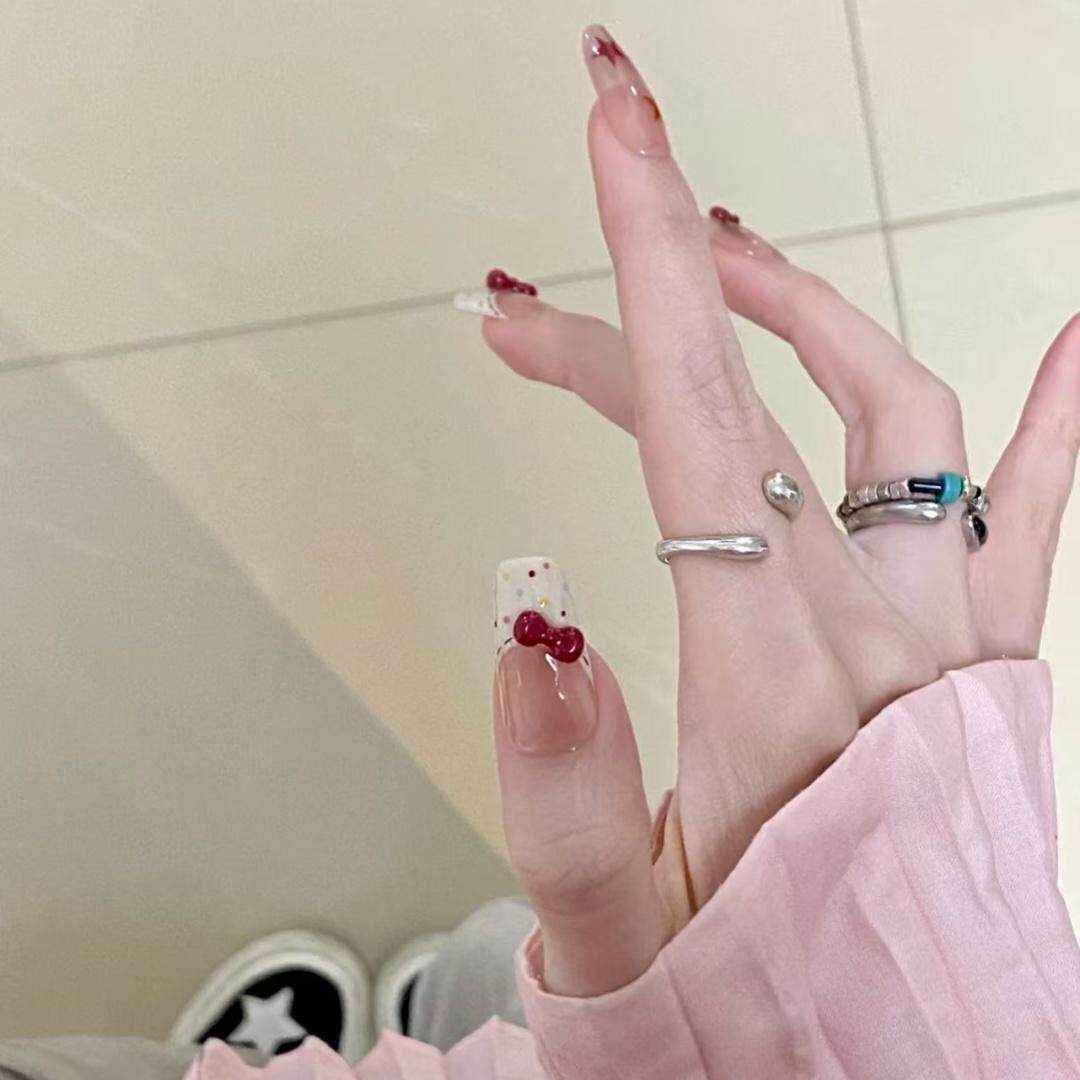 43穿戴甲手工光疗甲奶油小熊仔显白防水可拆卸假指甲新娘孕妇可带