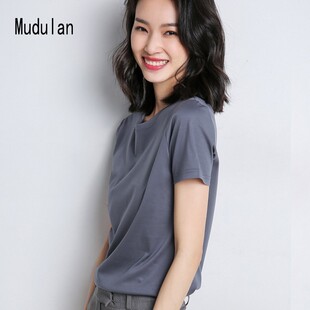 显瘦自带收腰短袖 牧都兰纯棉ins潮圆领2026T恤春夏款 上衣修身