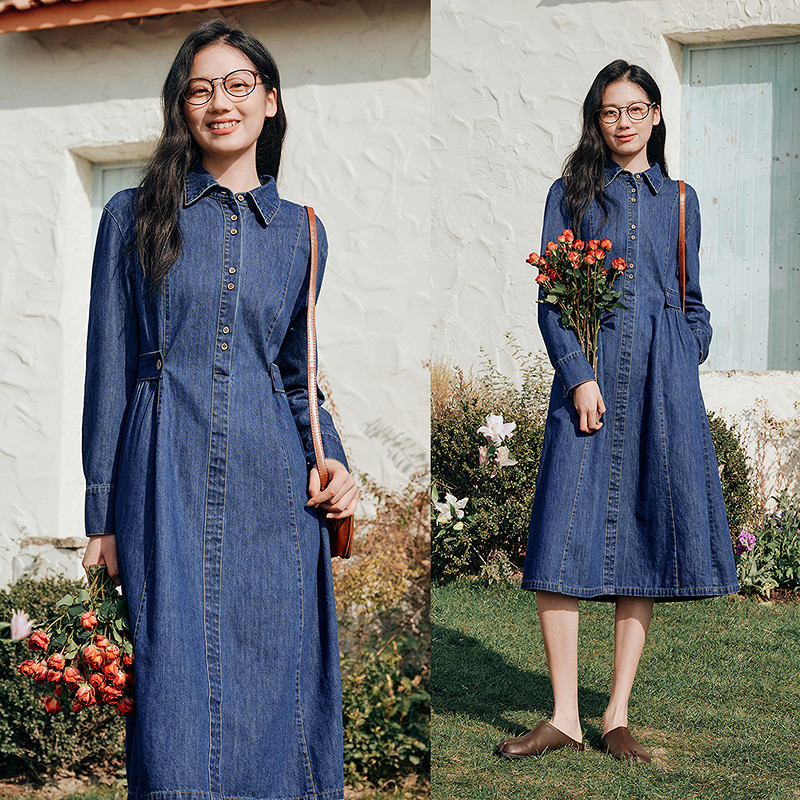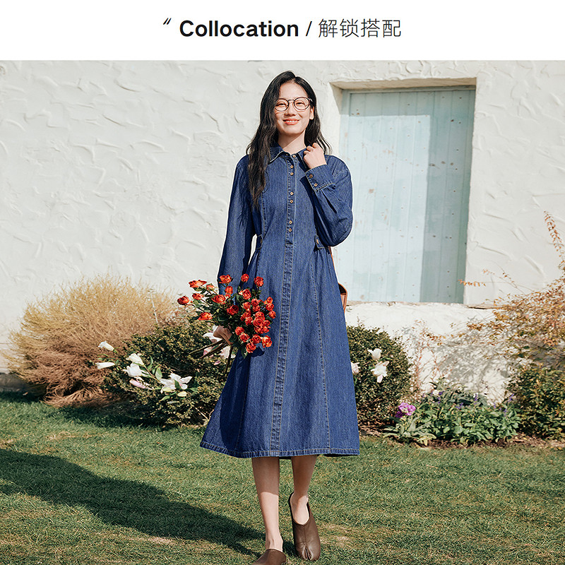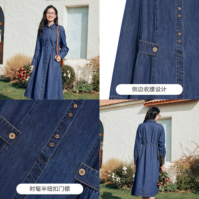 复古 减龄显瘦别致翻领时尚 片断牛仔连衣裙春季 新款