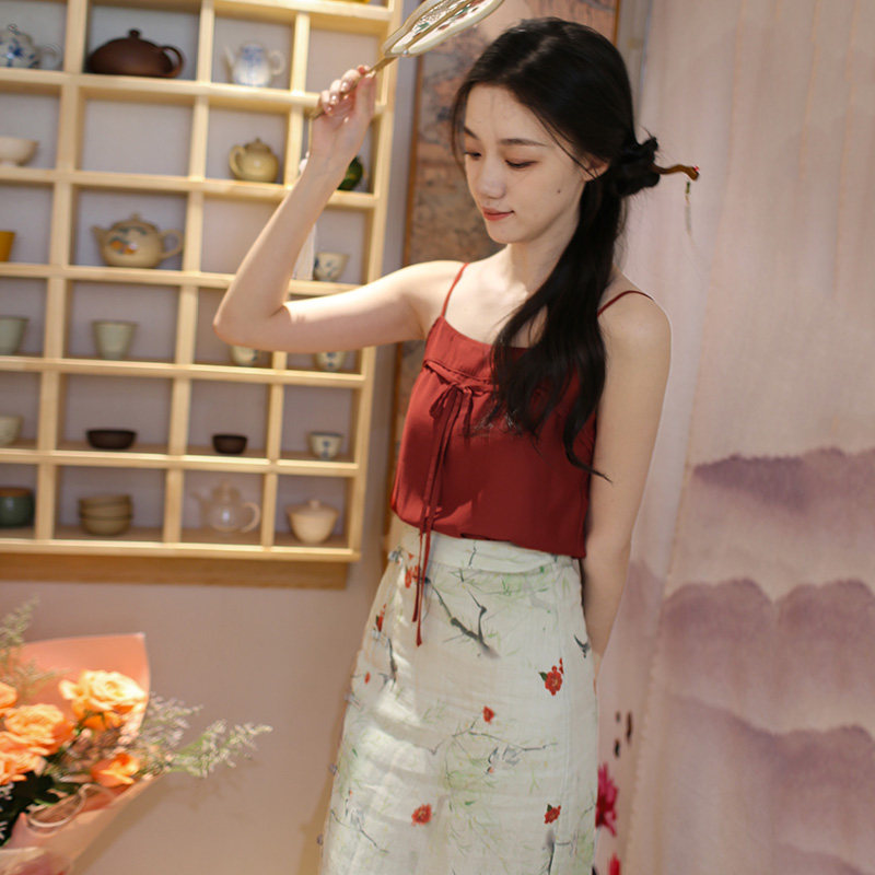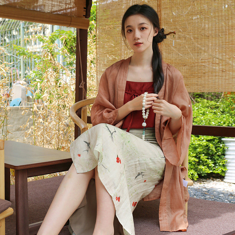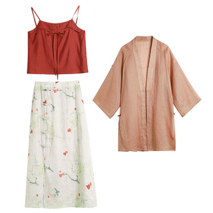 新国风开衫 朱颜浅 素套装 复古改良日常通勤汉元 吊带加半裙 新中式