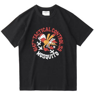 体恤 复古纯棉圆领打底衫 阿美咔叽短袖 t恤男水浆卡通印花后背美式