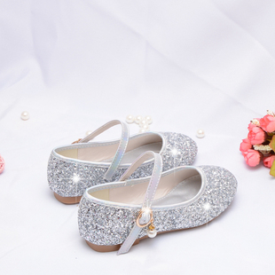 花童水晶银色平底女宝宝演出鞋 子小皮鞋 配礼服儿童鞋 女大童公主鞋