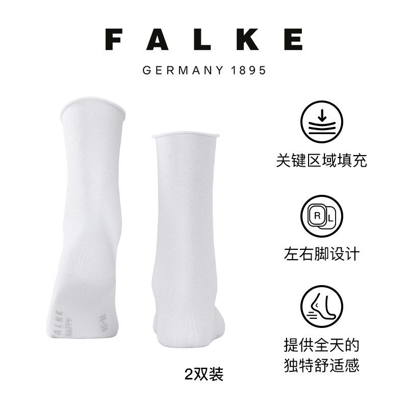 中筒休闲纯色舒适袜46417 FALKE鹰客德国进口Happy 2P女士两双装