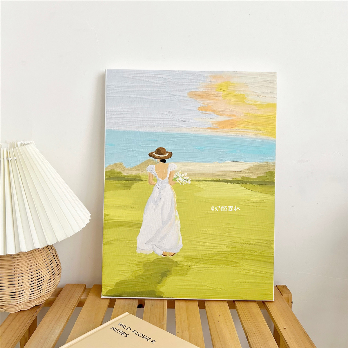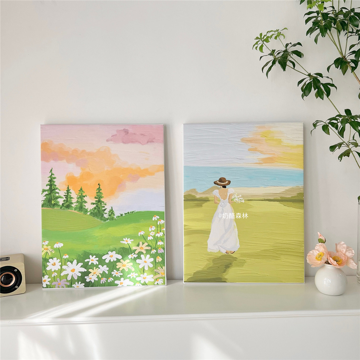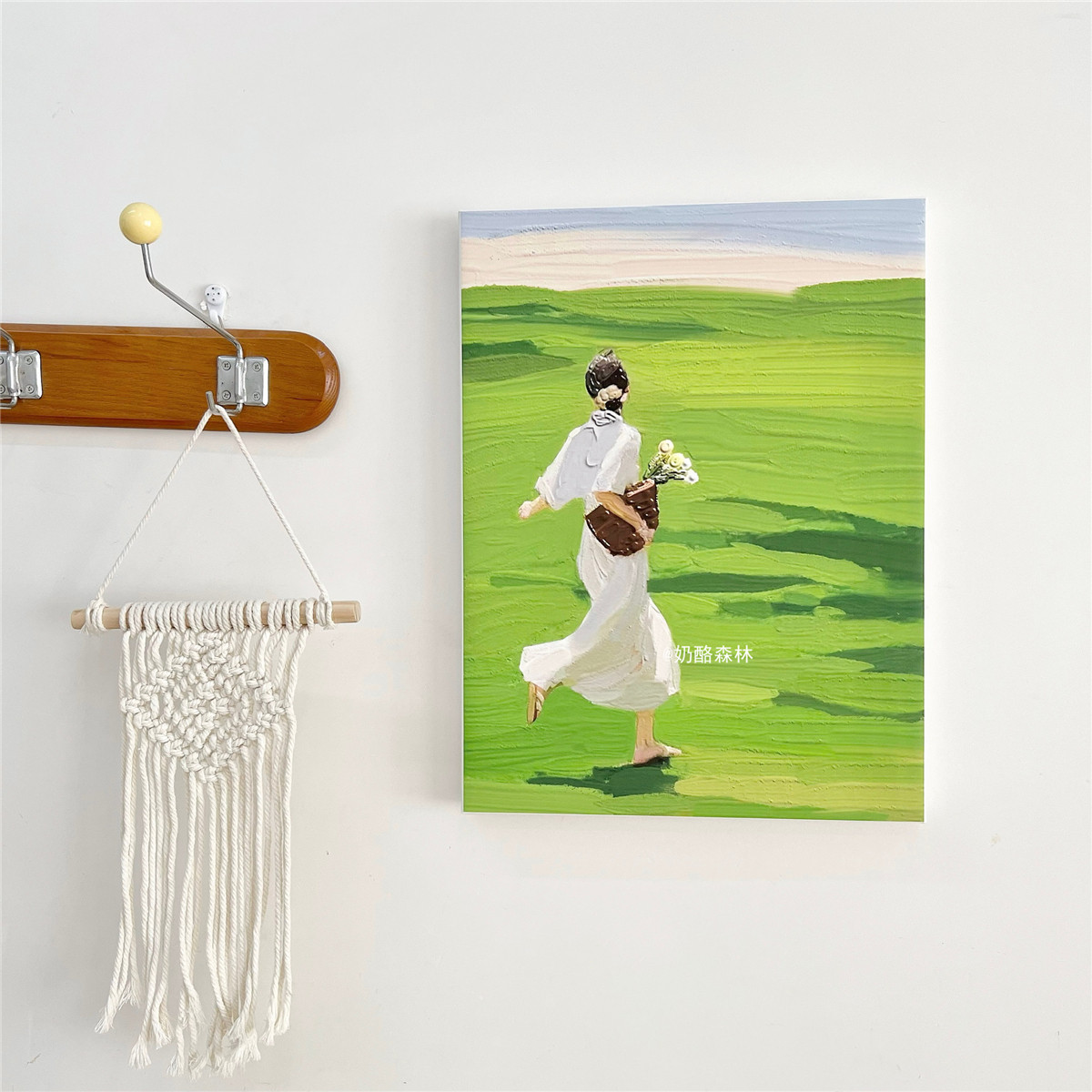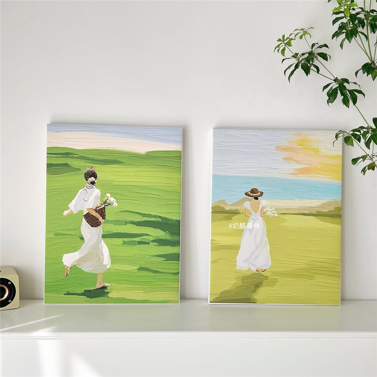 春天来了 简约油画桌面拍照背景 ins风春游少女实木相框摆件挂画