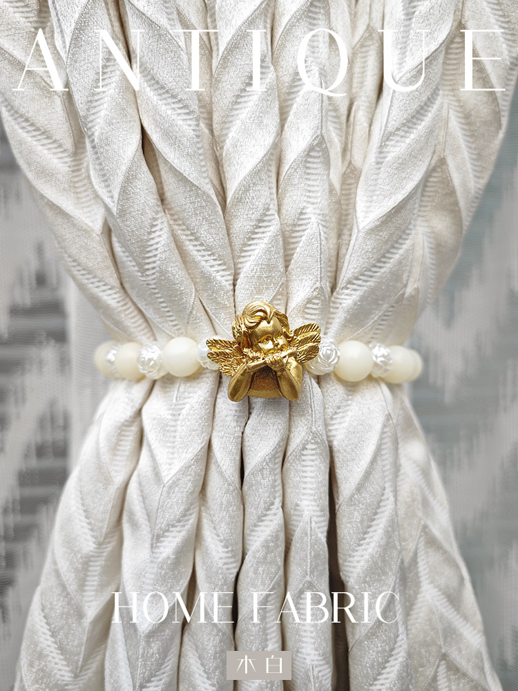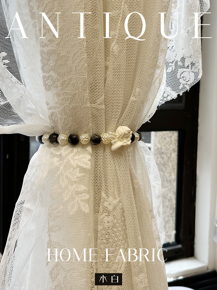 饰磁吸窗帘绑带珍珠琥珀免打孔纱帘收纳束带 装 小天使复古法式 美式