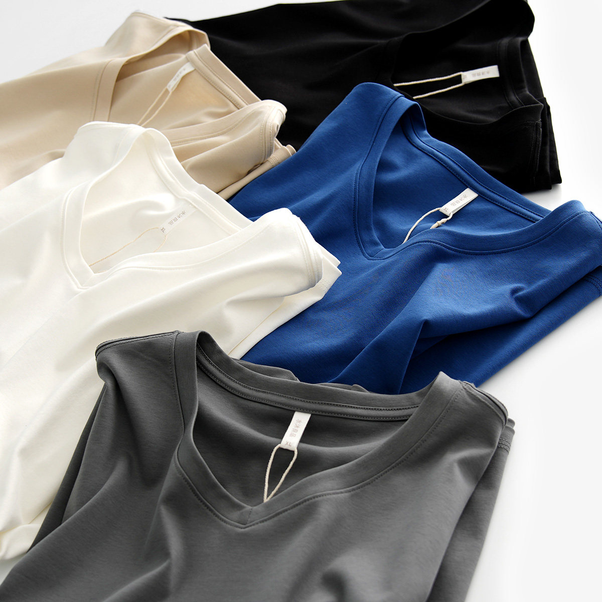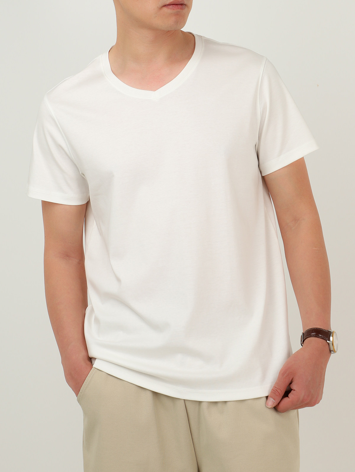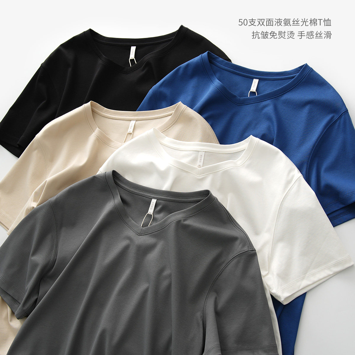 基础V领山东网店男装 短袖 液氨纯棉T恤男士 50支双面丝光匹马全棉