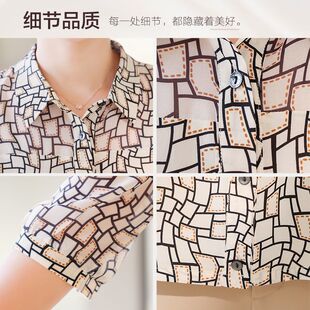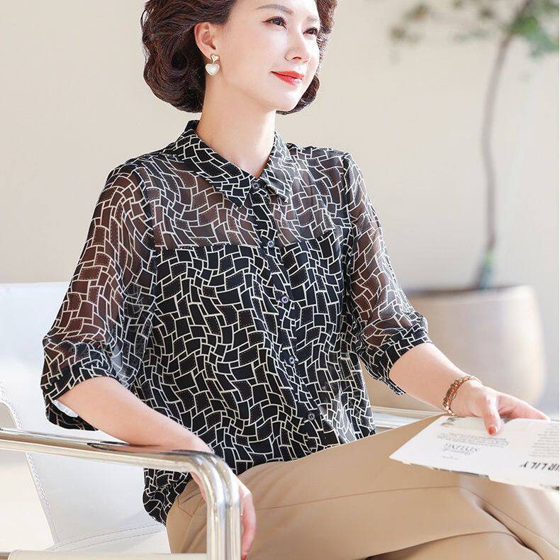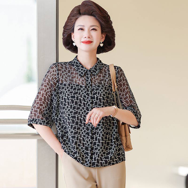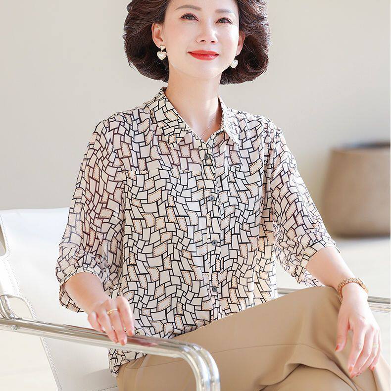 新款 衬衫 宽松薄款 上衣中老年洋气时尚 妈妈春夏季 小衫 雪纺七分袖
