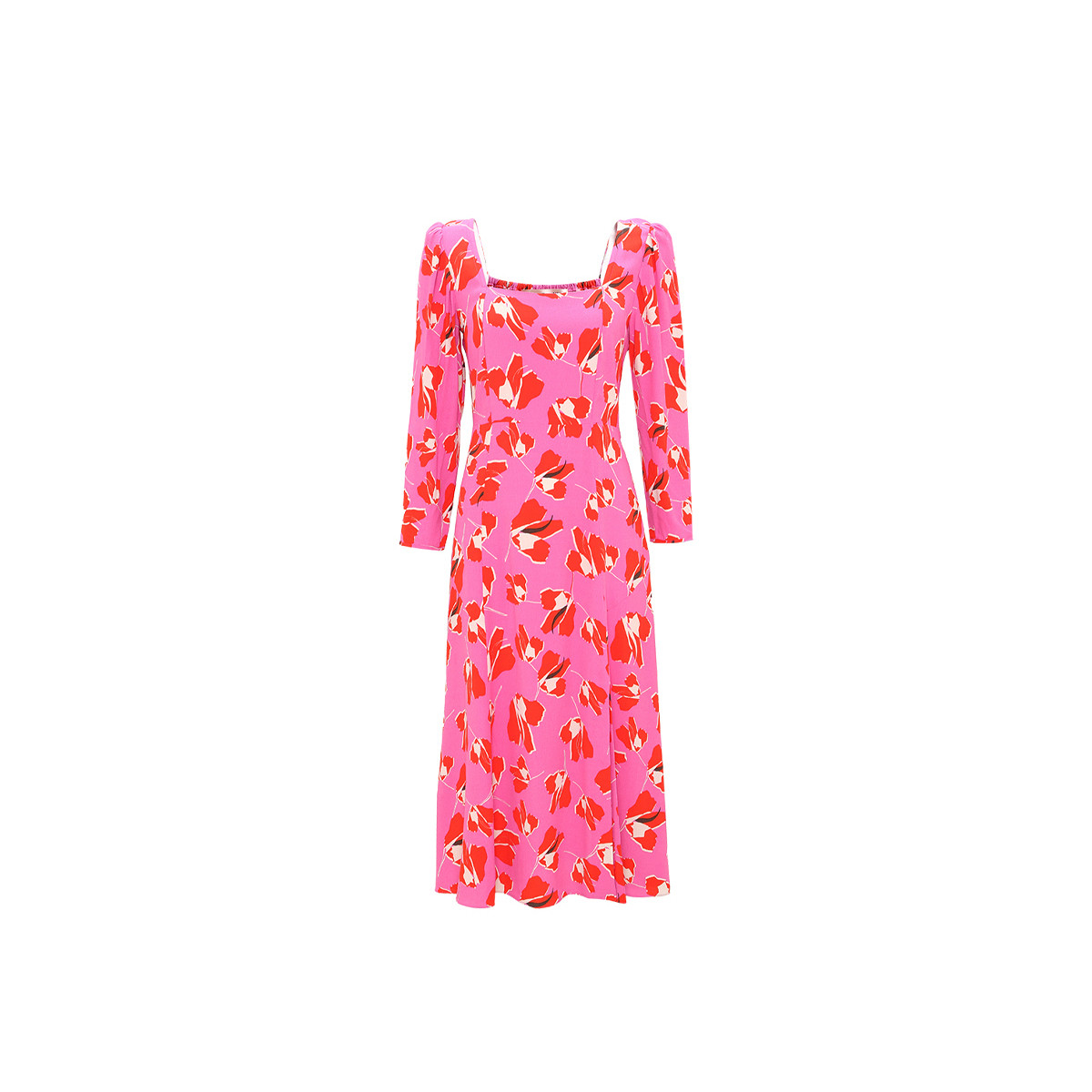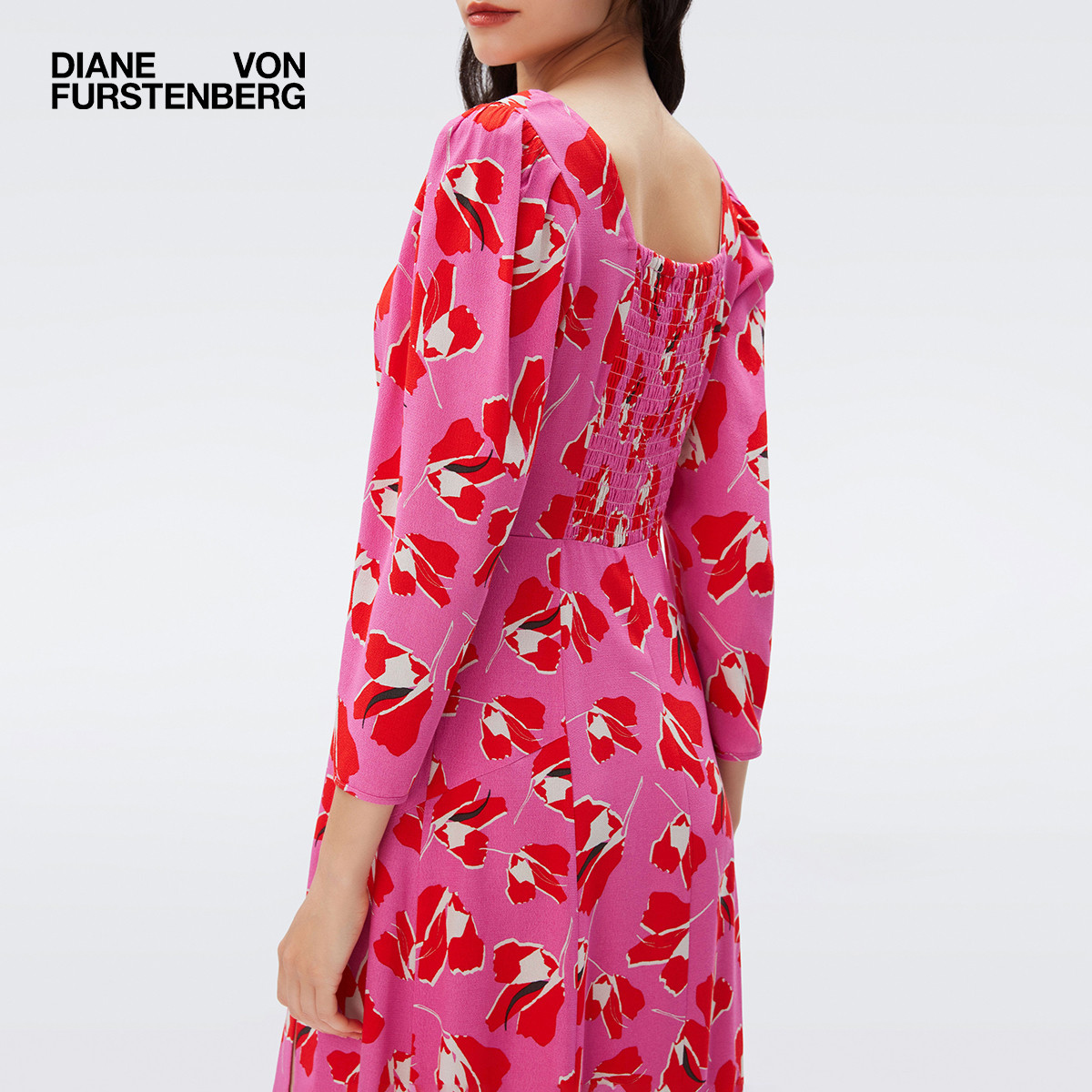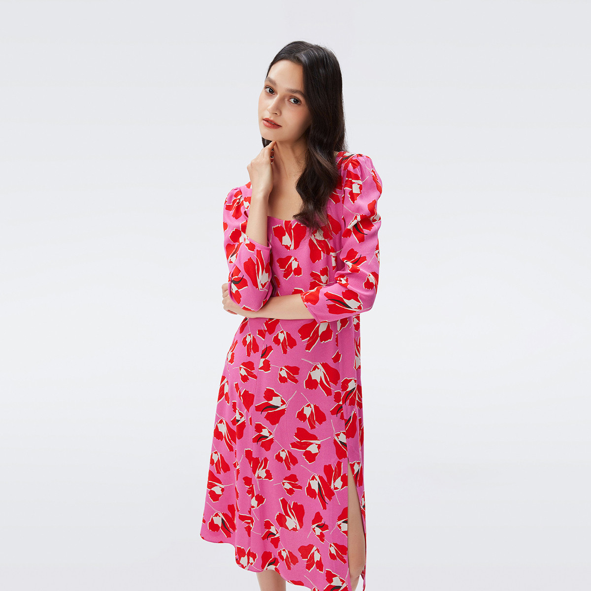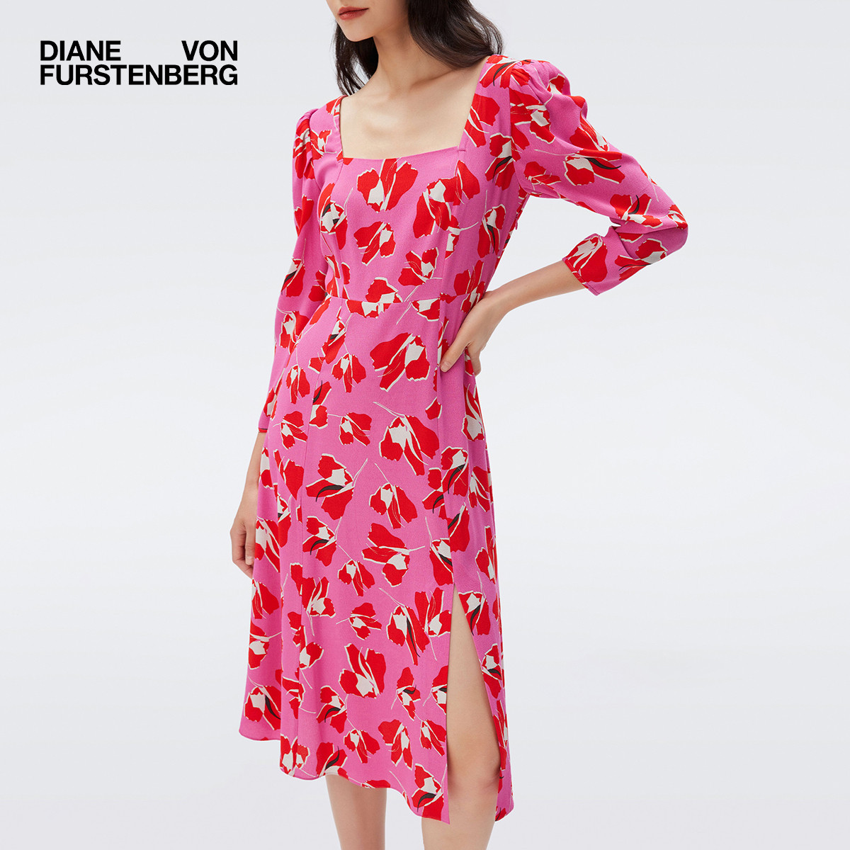 连衣裙DL2R004 度假法式 DVF 方领郁金香印花中长款