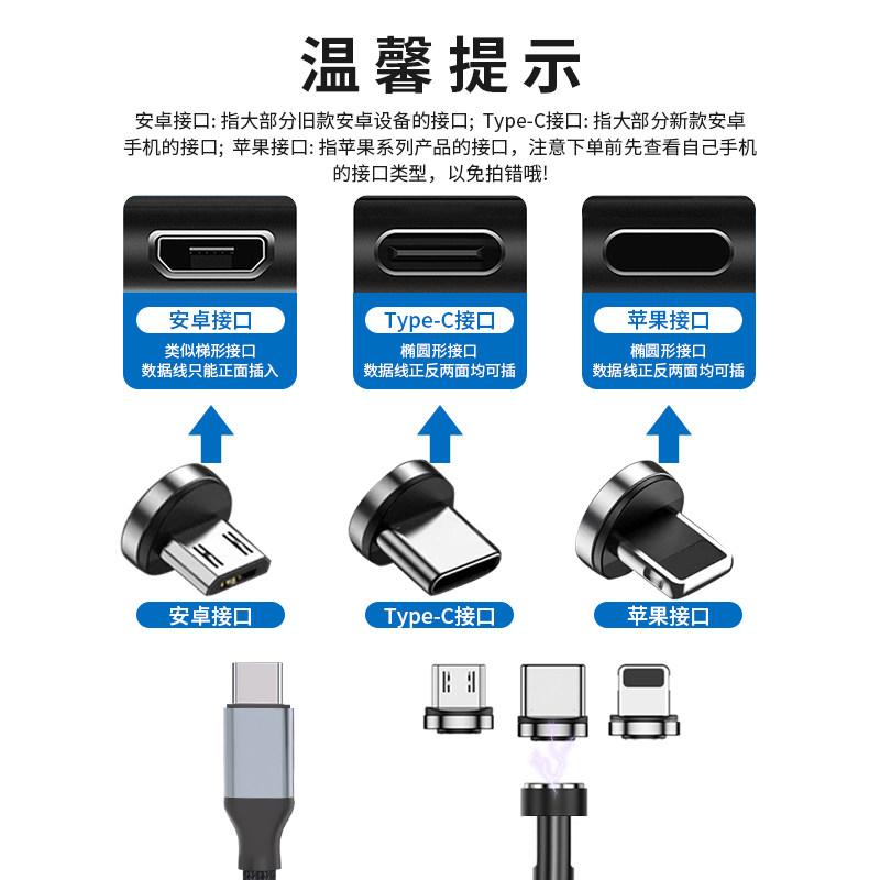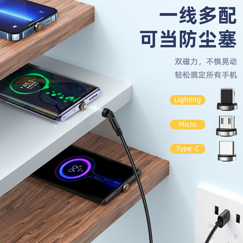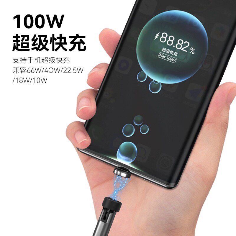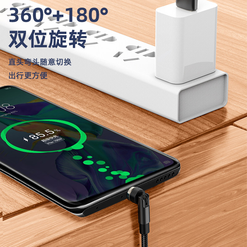 三方鼎立540度万能旋转双typec磁吸快充数据线PD66W充电线器闪充一拖三强磁力弯头适用苹果华为小米vivo车载