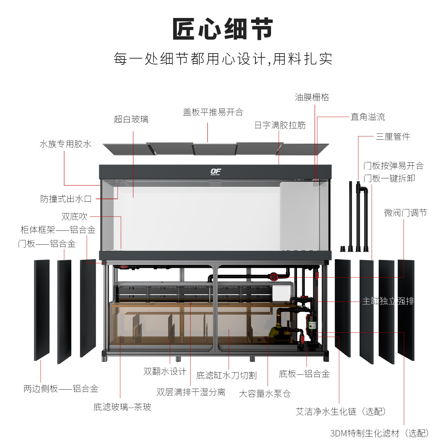 仟湖OF水影龙鱼缸办公室客厅家用大型鱼缸专业龙鱼缸底滤缸水族箱