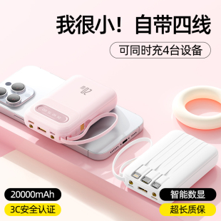 3C认证2026新款 旗舰店适用华为苹果专用可上飞机超薄小巧便携迷你 充电宝快充大容量20000毫安自带线官方正品