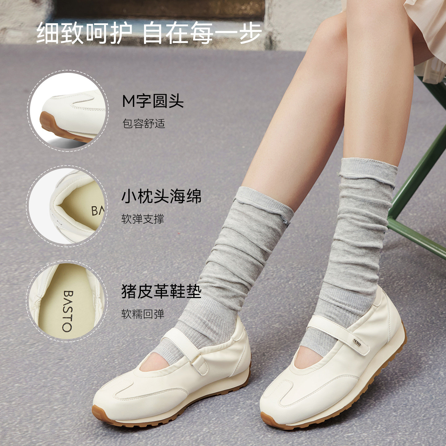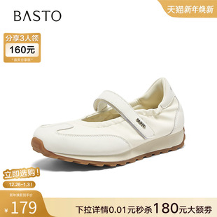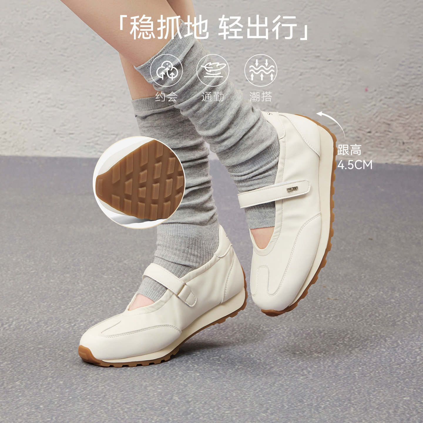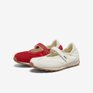 红色魔术贴休闲女单鞋 芭蕾舞德训鞋 A1088CQ5 新款 百思图2025秋季