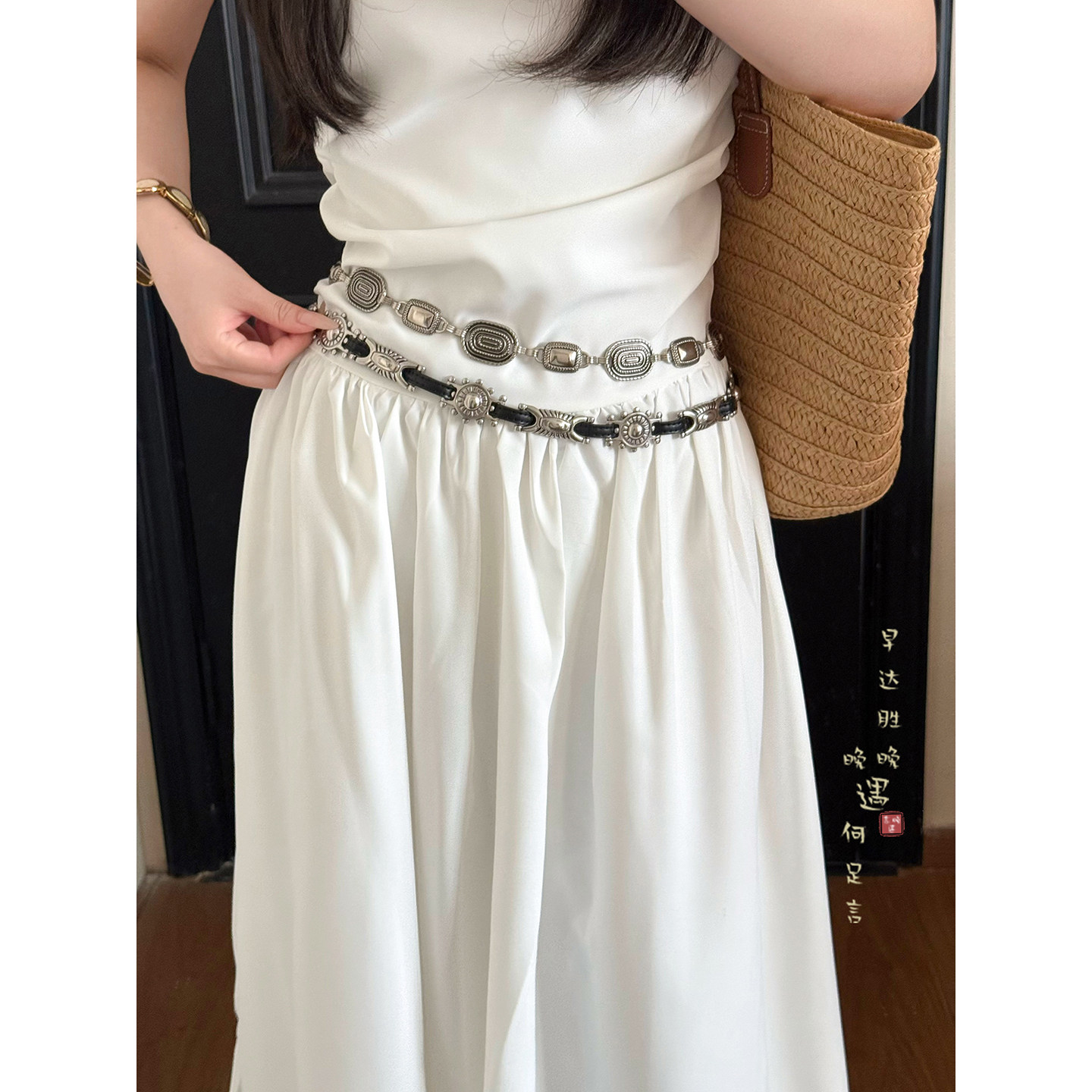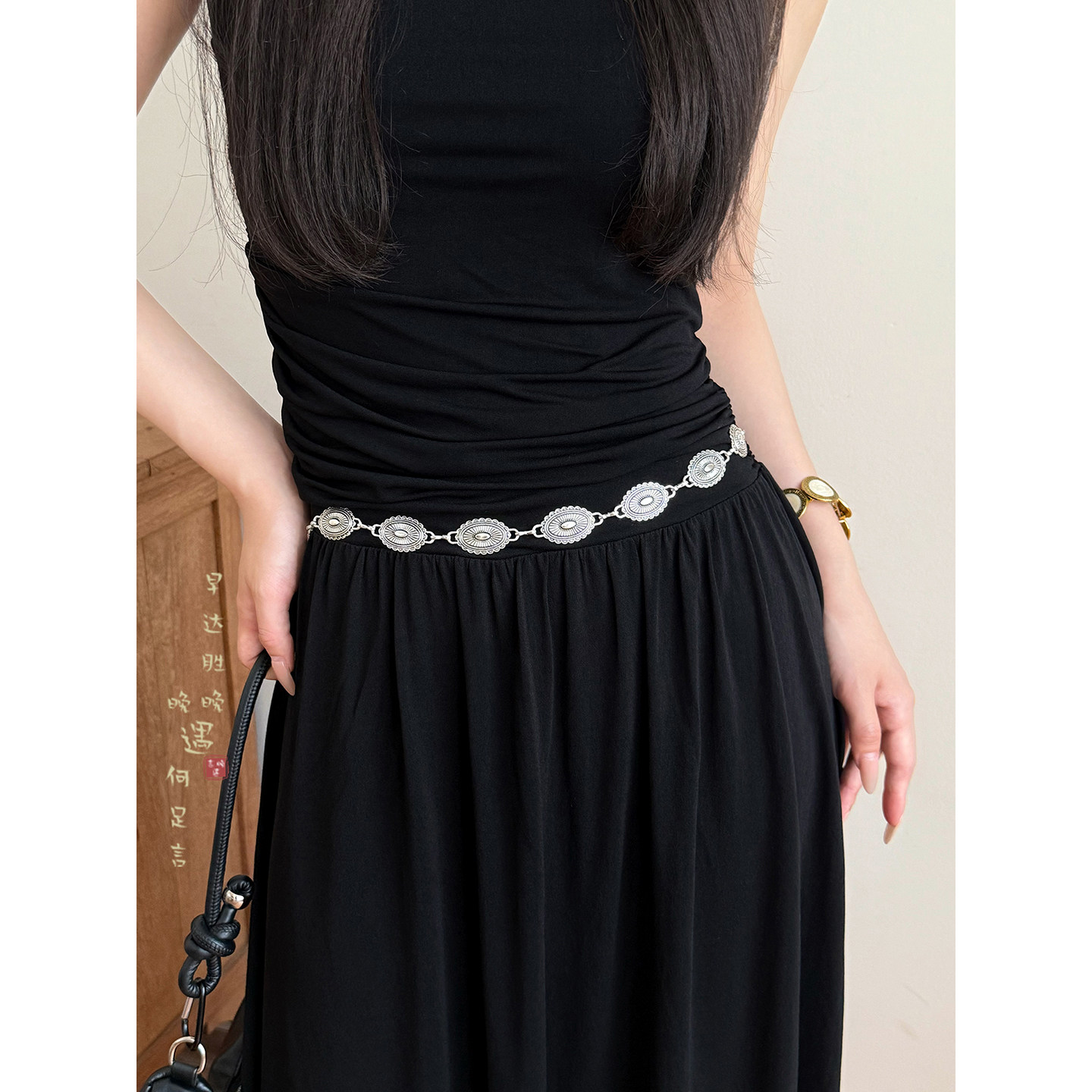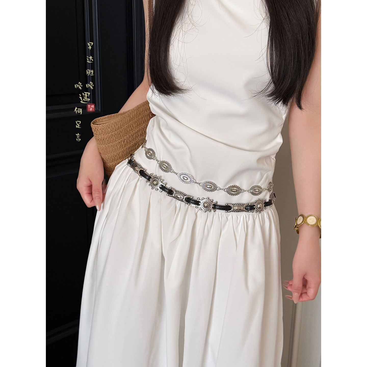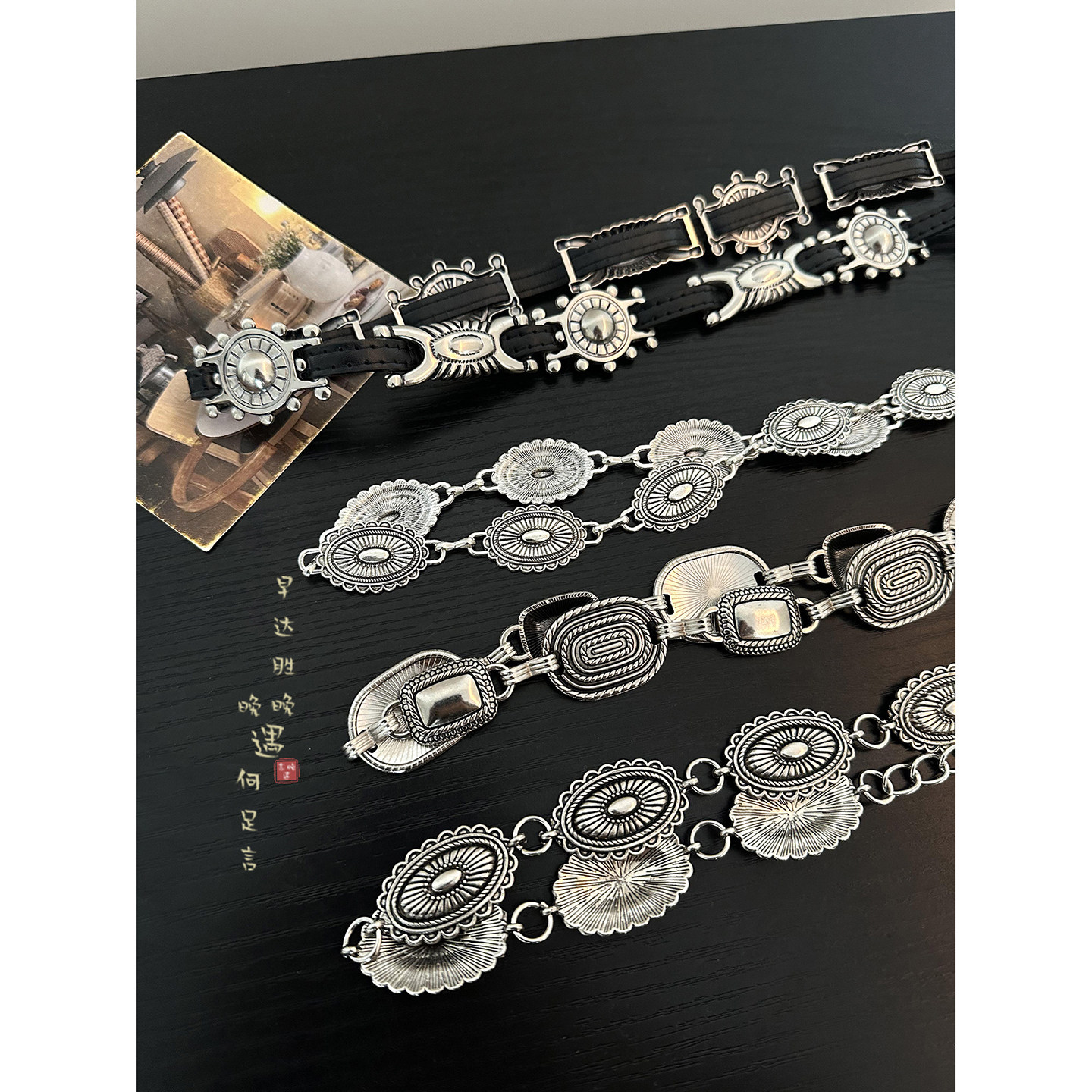 复古银色太阳花腰带女士装 高级感民族风腰链腰间配饰品 饰配牛仔裤