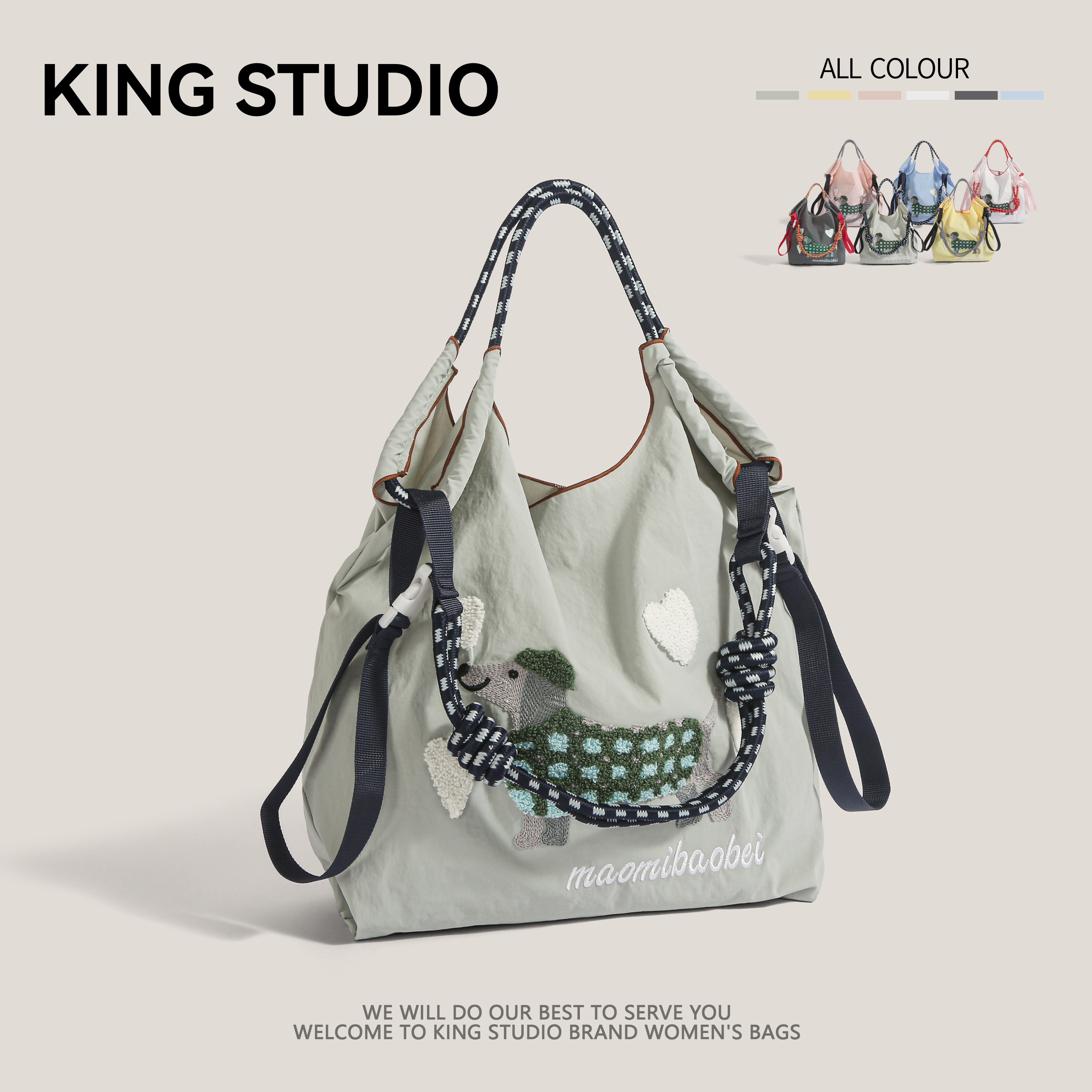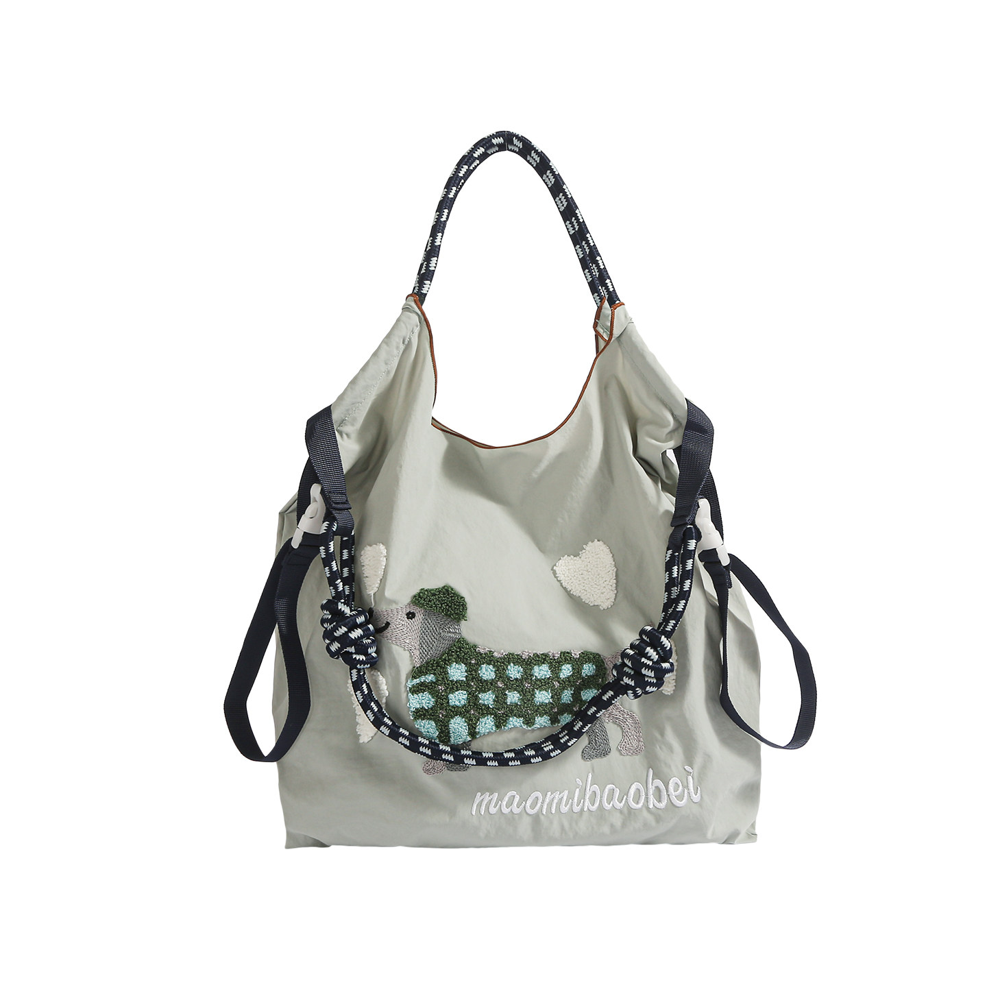 日本ball chain刺绣腊肠狗环保袋帆布包手提购物袋上班通勤斜挎包
