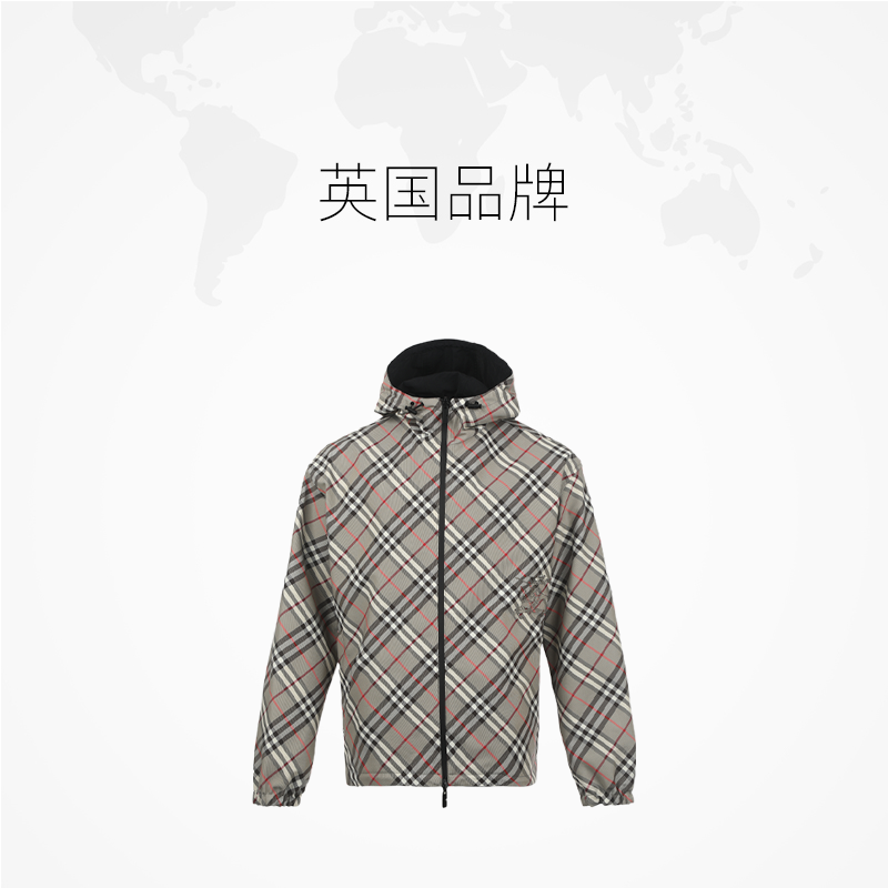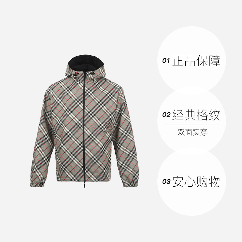 博柏利男士 BURBERRY FW25格纹双面穿连帽拉链夹克外套 自营