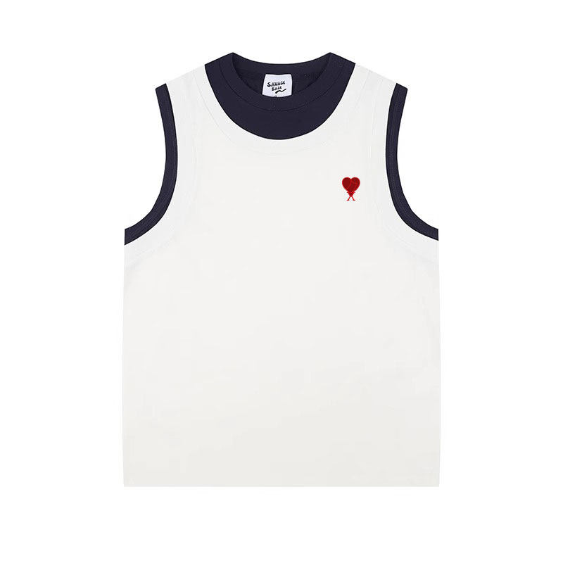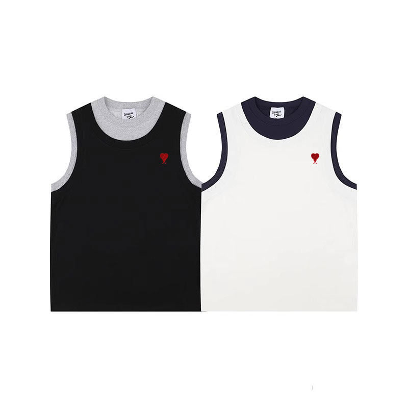 潮流假两件拼接撞色背心宽松休闲无袖 正品 新款 DRAJK夏季 T恤 AMI