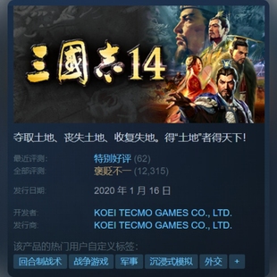 三国志14 激活码 威力加强版 国区KEY CDKey RTK14 Steam正版