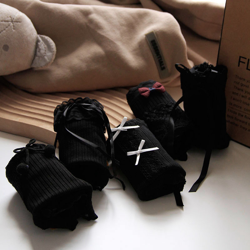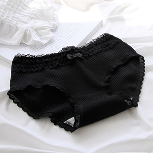 089 女洛丽塔 蕾丝边内裤 日系纯黑色包臀纯棉裆中腰女士内裤